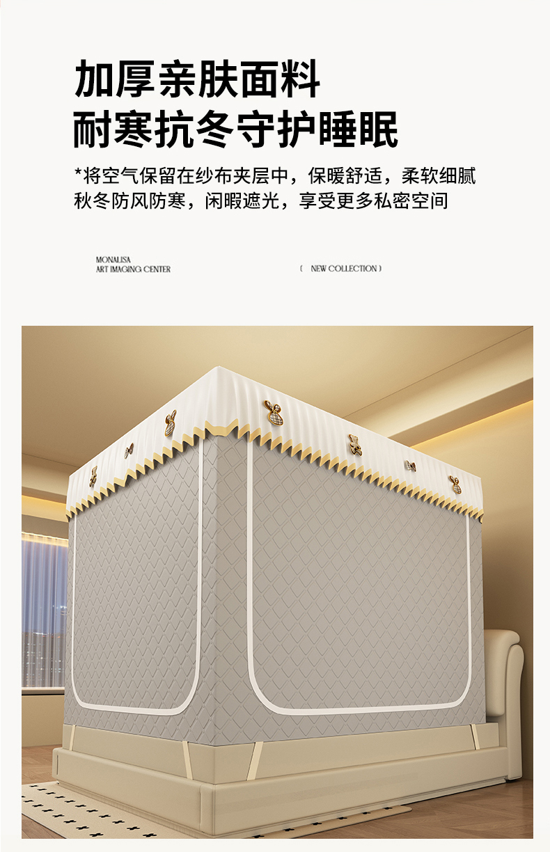 商品名称:(总)无瑕家居 2025新款加厚遮光防蚊拉链式纯色夹棉遮光款坐床防摔蚊帐床幔不漏风保暖蚊帐