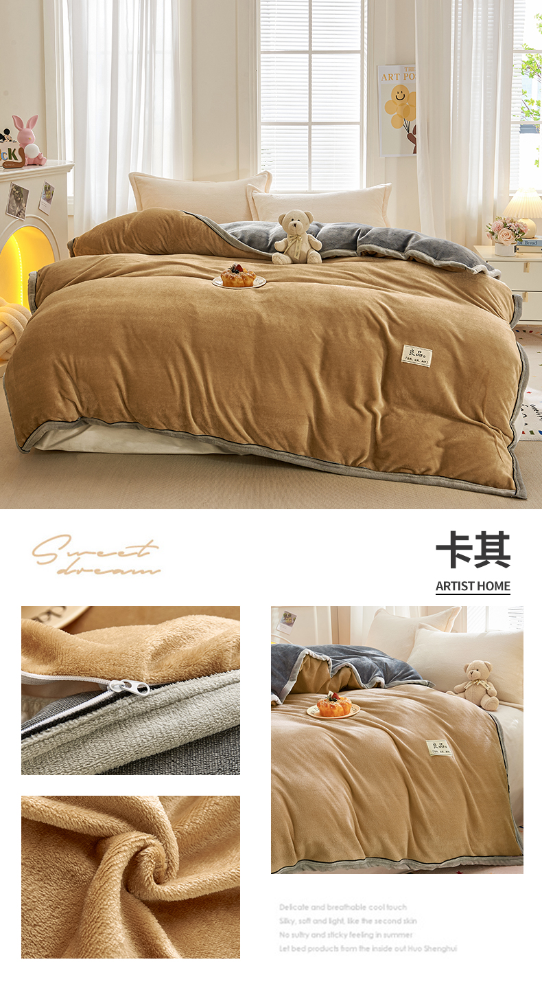 (总)天之澜家纺 2025新款多功能牛奶绒单被套盖毯(不含被芯),典雅白,豆绿,卡其,墨玉蓝,烟灰,胭脂粉