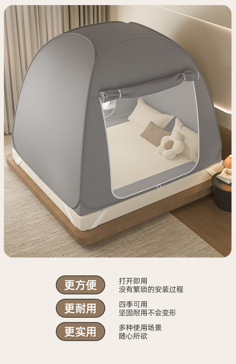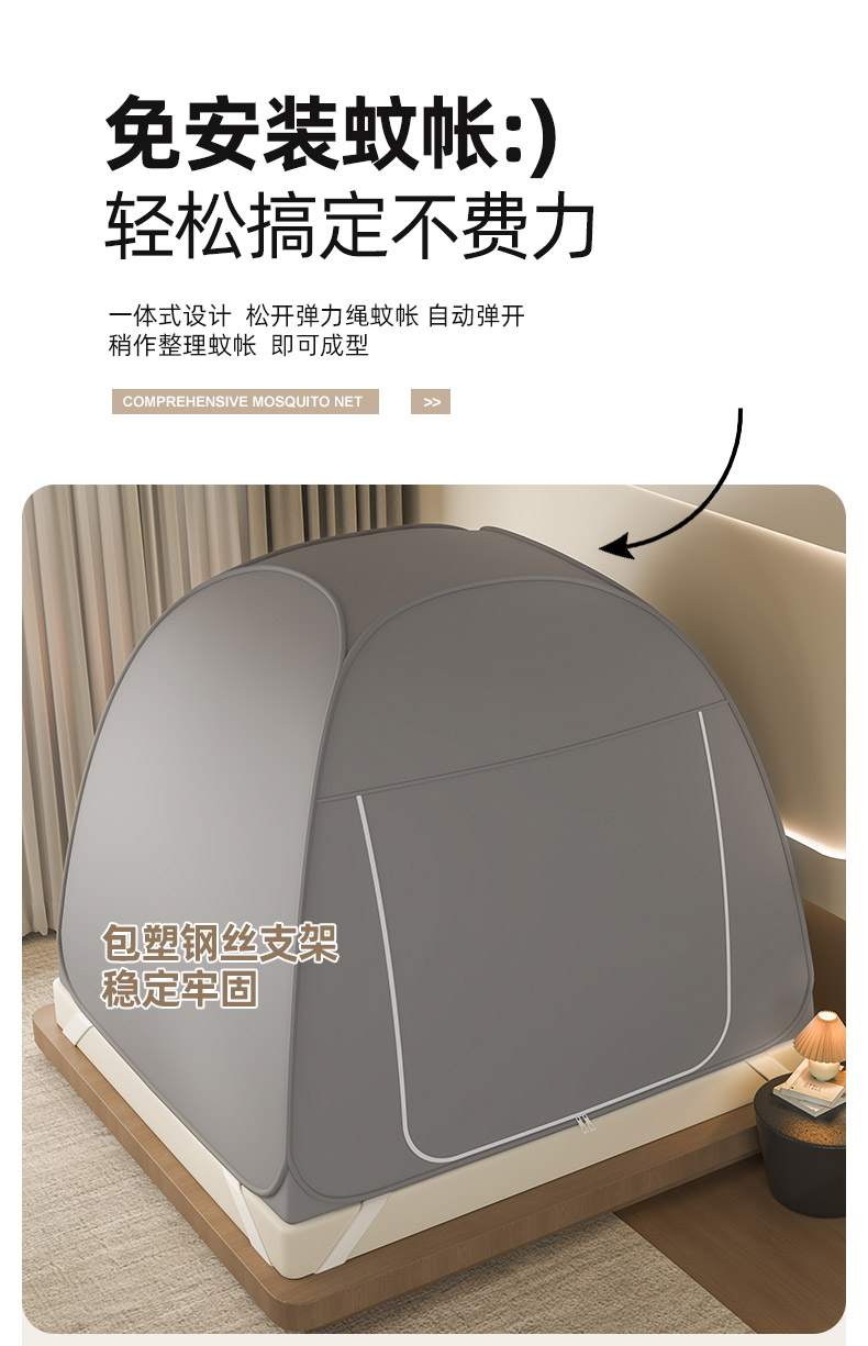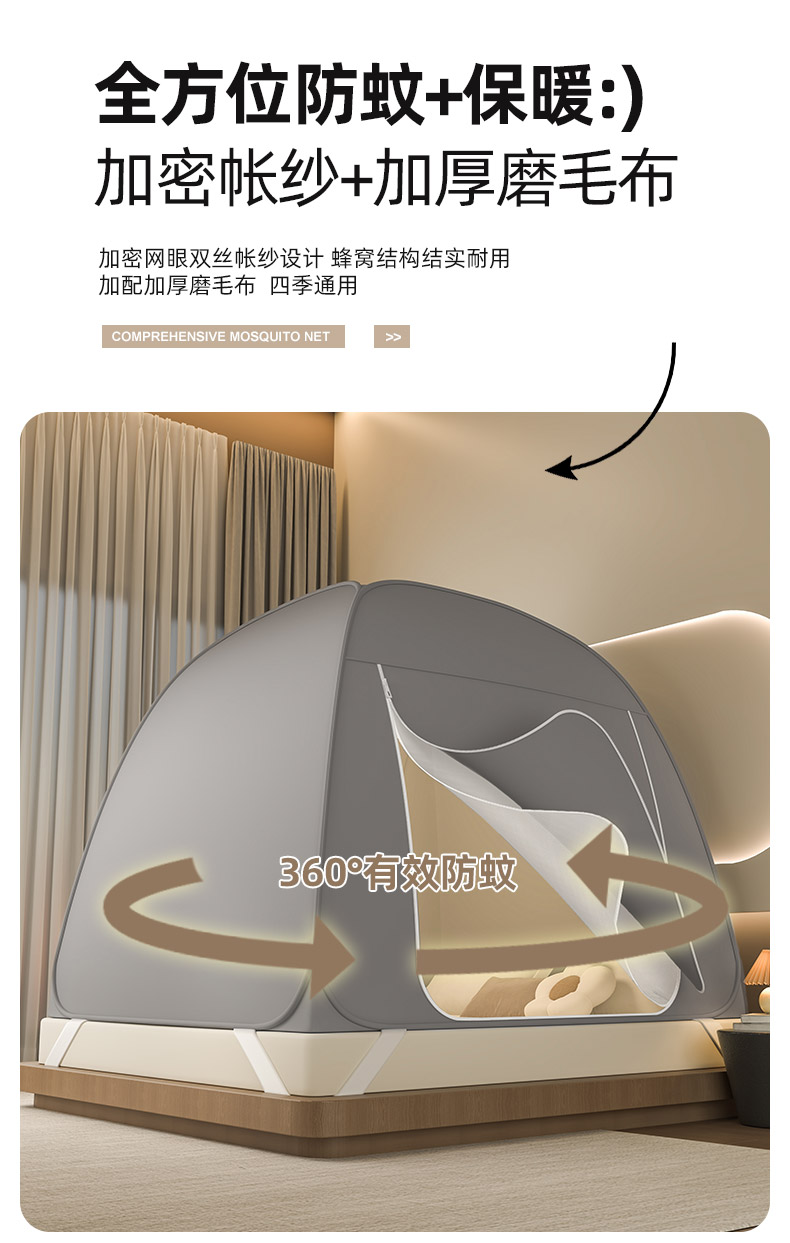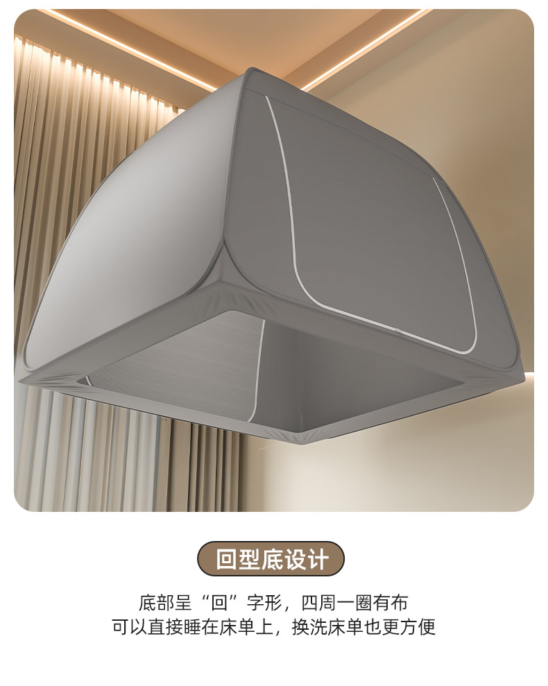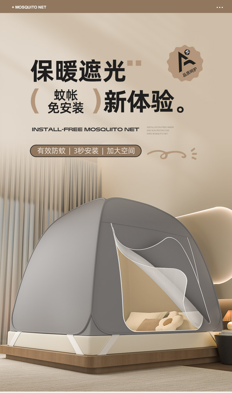 商品名称:海虹蚊帐 2025新款免安装保暖遮光钢丝蚊帐 浅灰加厚全底