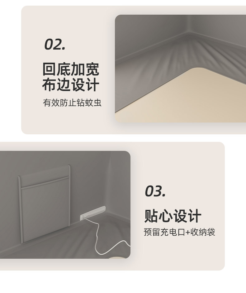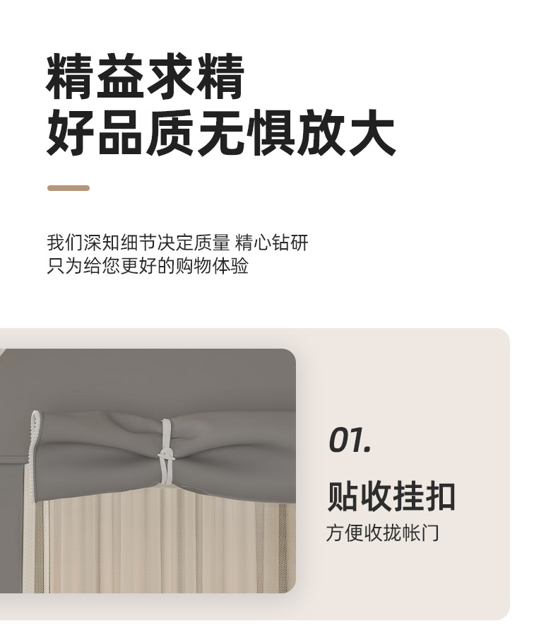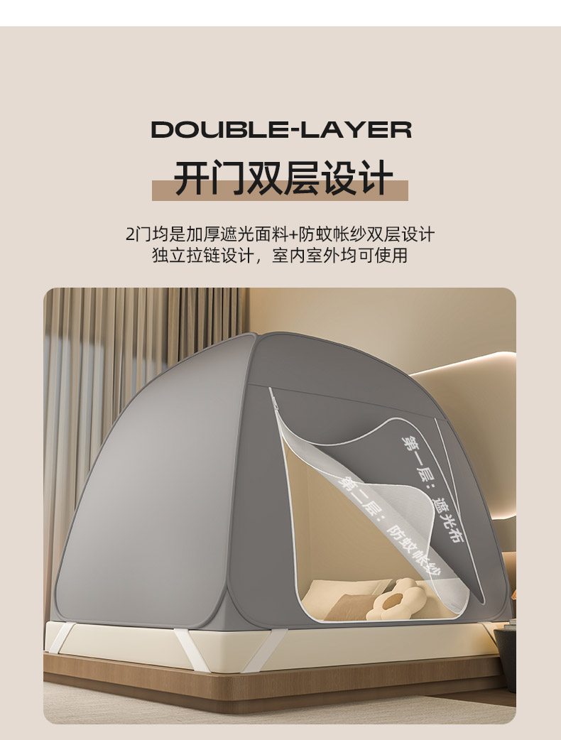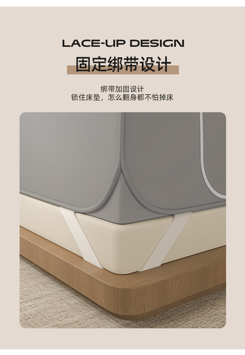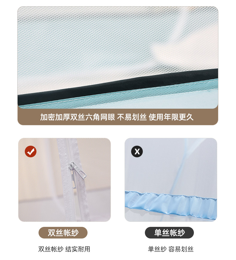 商品名称:海虹蚊帐 2025新款免安装保暖遮光钢丝蚊帐 浅灰加厚全底