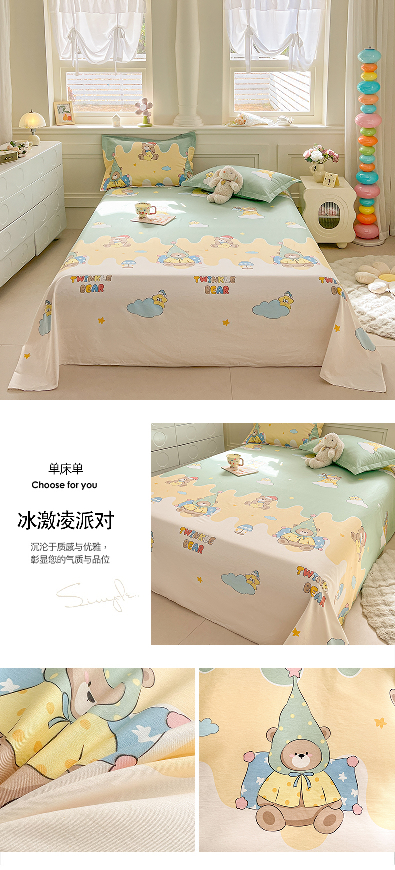 当前位置: 91家纺网 > 商品网购 > 床上用品 > 床单 > 名优家纺 2026新款12868全棉小清新印花四件套单品系列-单床单 冰激凌派对