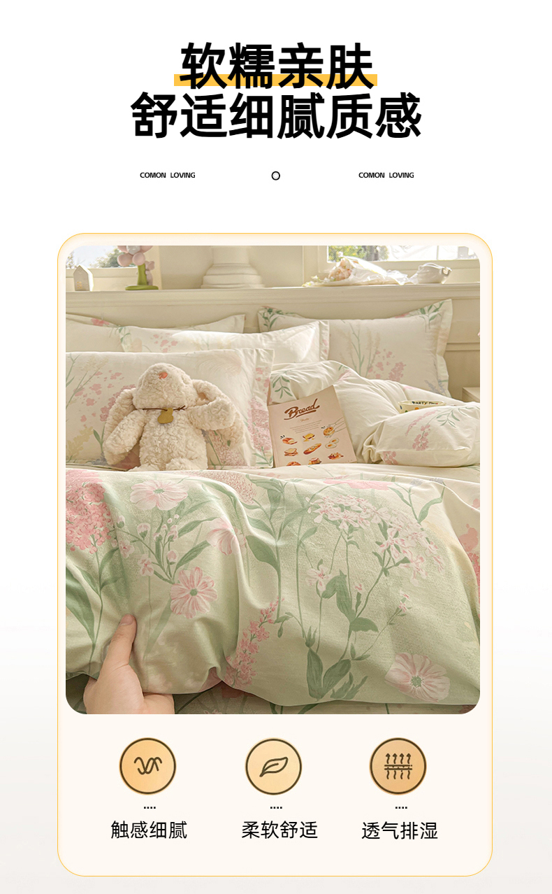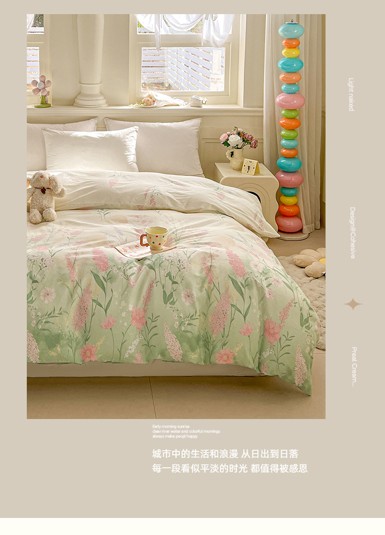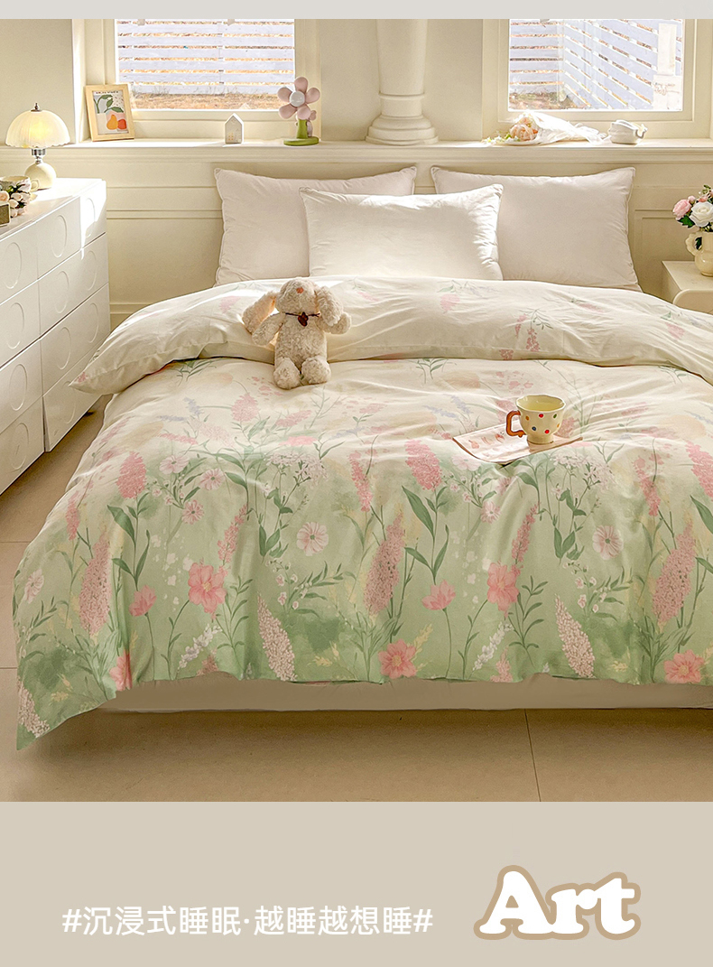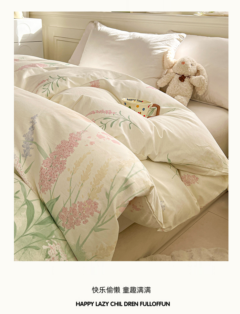 • 91家纺网 家纺一手货源 找家纺 名优家纺 2026新款12868全棉小清新印花四件套单品系列-单被套 谣谣玉穗