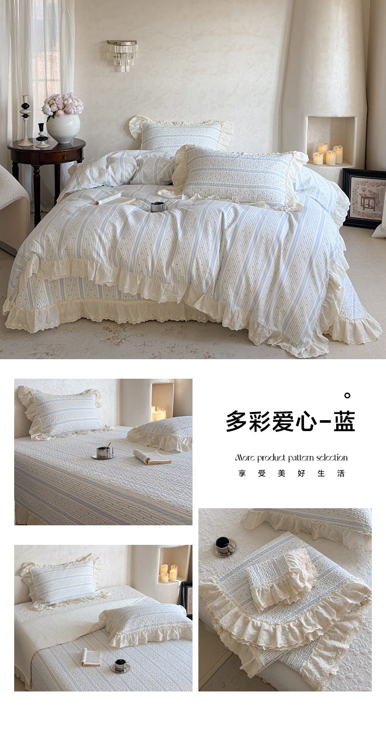 (总)琳可家居 2025新款全棉色织水洗棉刺绣款四件套-甜心系列,甜心-粉,甜心-蓝
