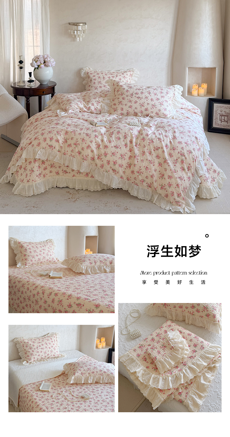 (总)琳可家居 2026新款印花全棉双层纱床盖棉布花边高温水洗A类标准夹棉可机洗,蝴蝶结,巴黎春天,多彩爱心-粉,多彩爱心-蓝,风雅花韵,浮生如梦,花园里,花之语,玫瑰故事,山岚绮梦,熊熊乐园,樱桃,组合图