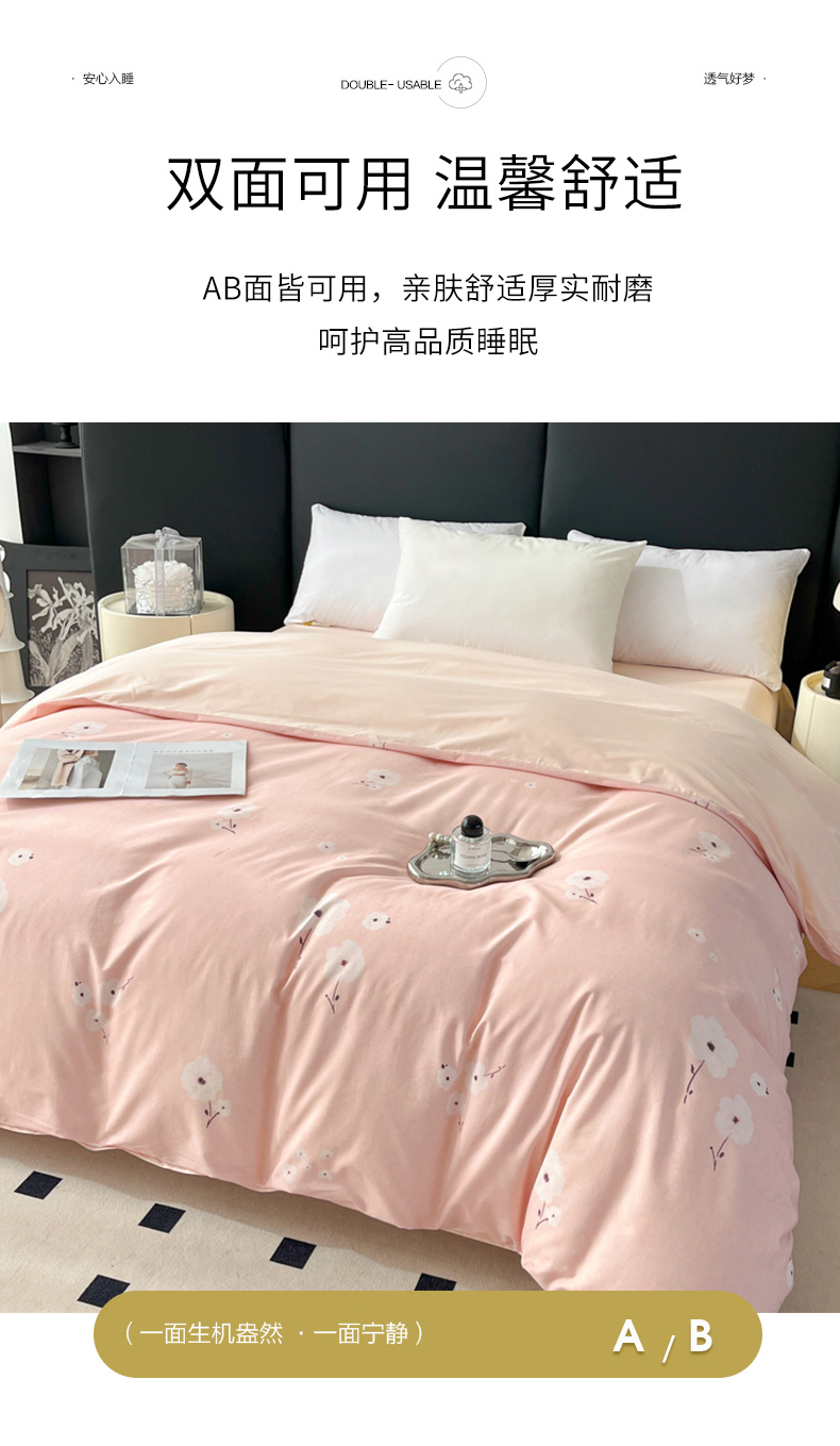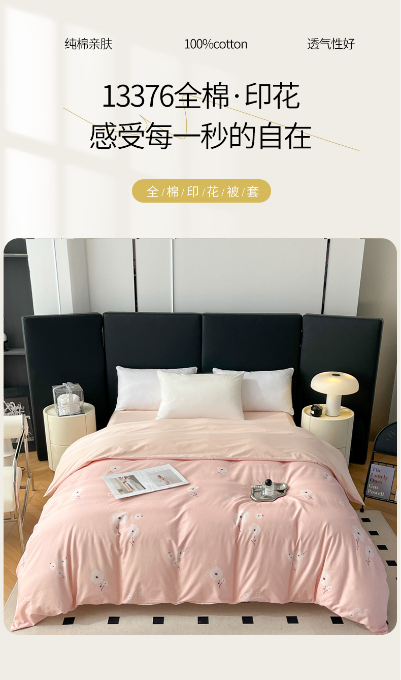 • 91家纺网 家纺一手货源 找家纺 艾迪尚家纺 2026新款133X76宽幅全棉纯棉印花单品被套 被套单件 南意-粉