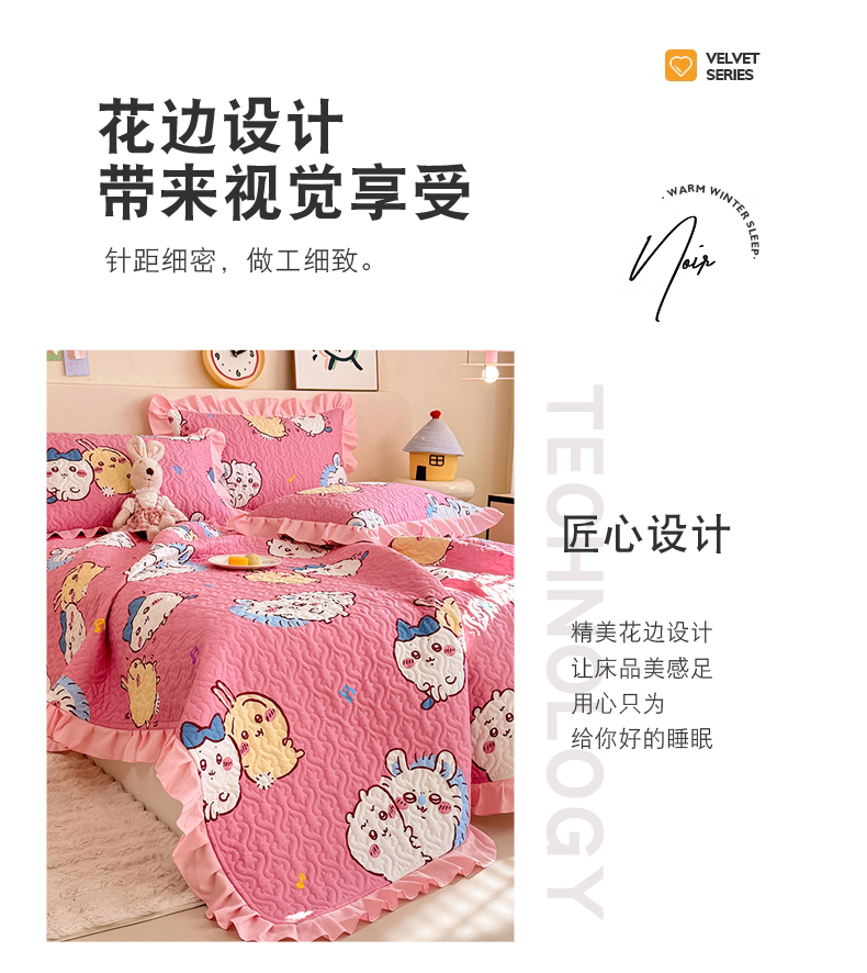 (总)美达家纺 2025新款高克重牛奶绒花边款夹棉床盖三件套,巴拉巴拉,格子萌熊,恐龙星球,梦蝶,时来运转,甜蜜奶吧,微笑熊,针织熊