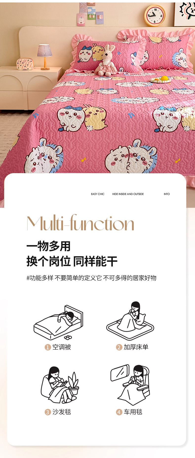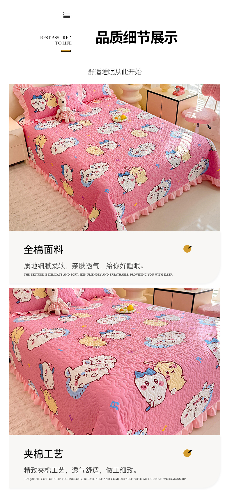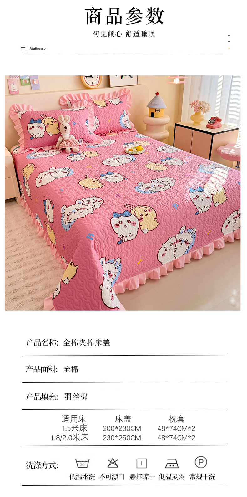 商品名称:(总)美达家纺 2026新款正版授权吉伊卡哇全棉防滑床盖单品床盖床盖单件(可定制)