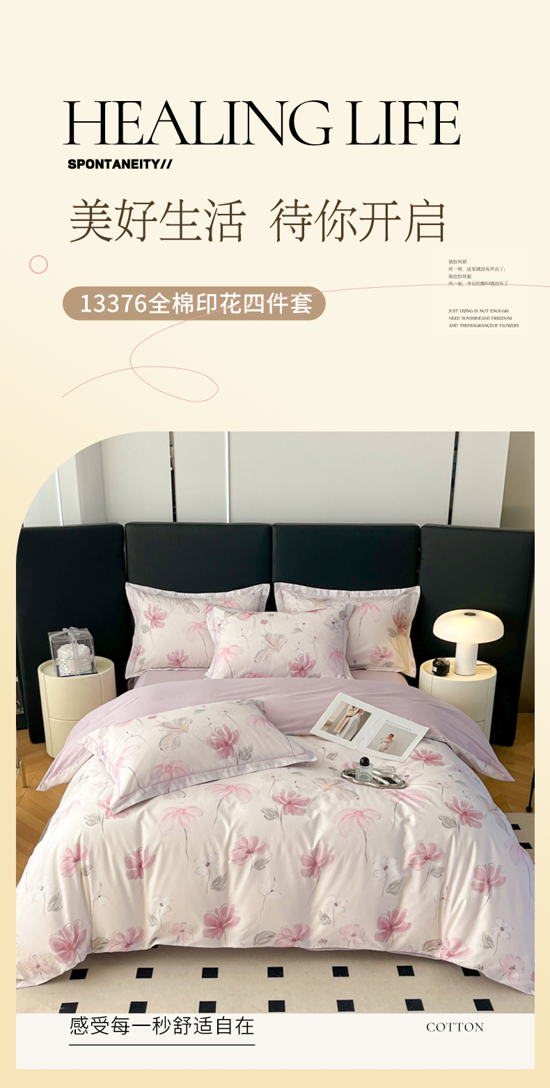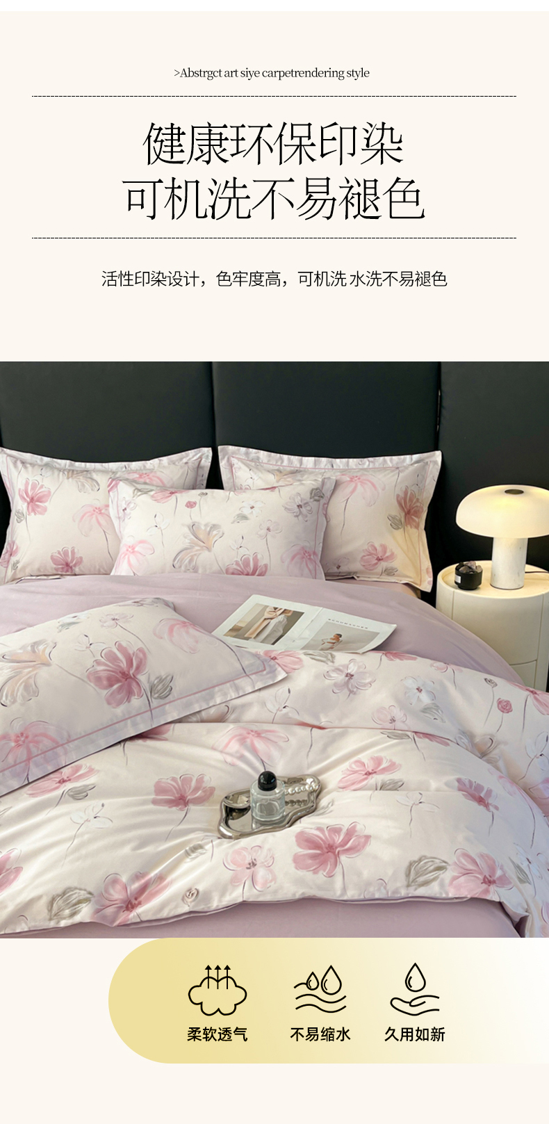当前位置: 91家纺网 > 商品网购 > 床品套件 > 四件套 > 全棉普通四件套 > 艾迪尚家纺 2026新款133X76宽幅全棉纯棉印花四件套(有单品 可定制) 盛夏-紫