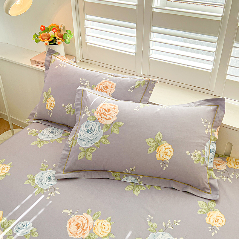 商品名称:名优家纺 2026新款60S13374高支密全棉印花纯色单枕套 奶黄+樱花粉