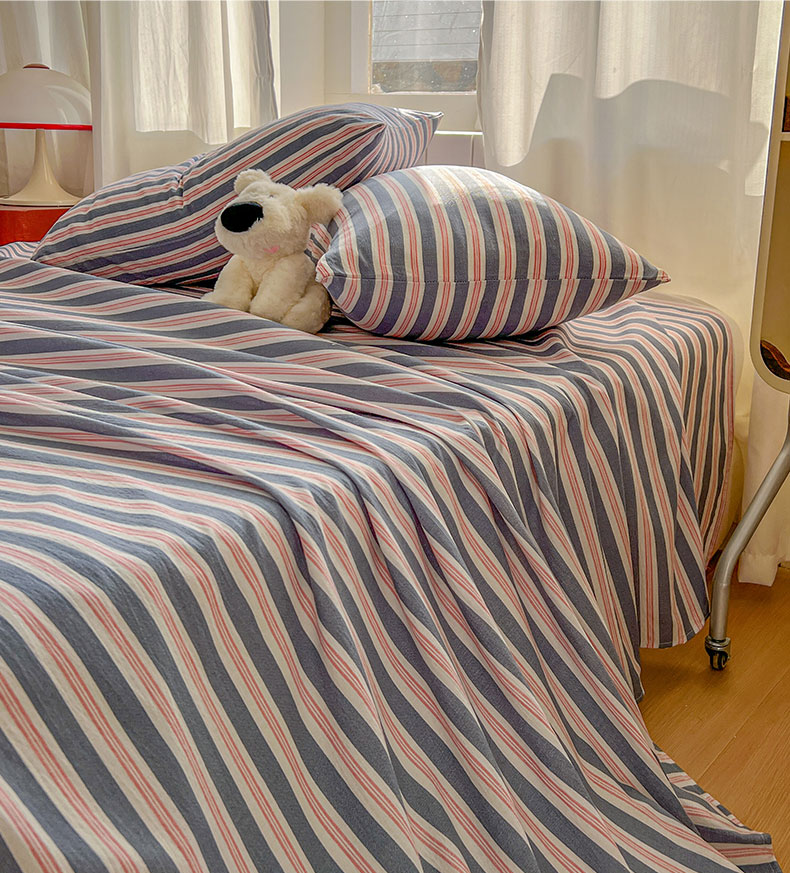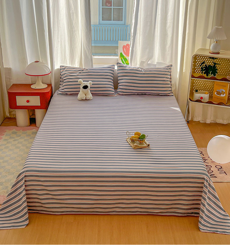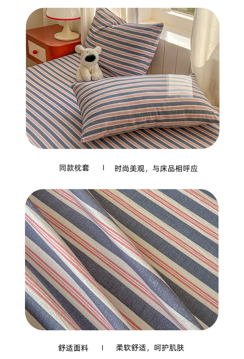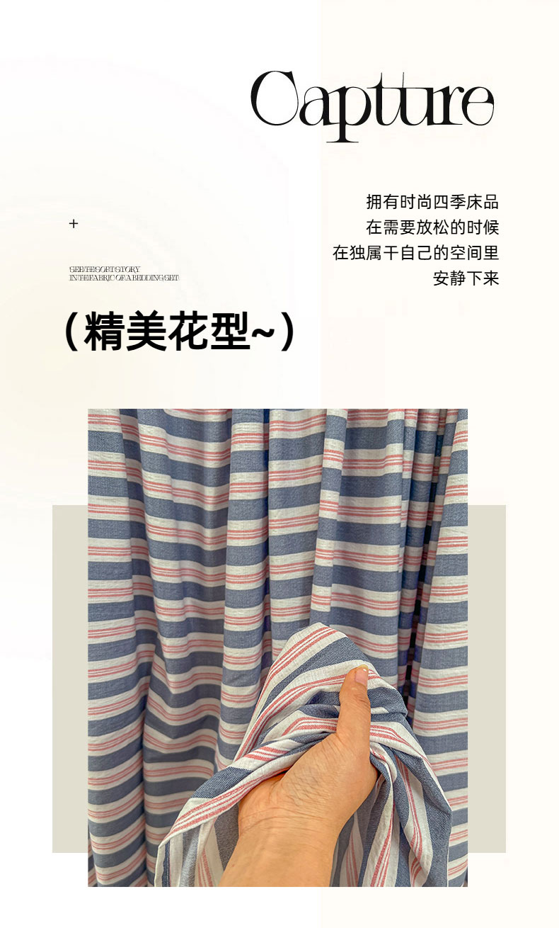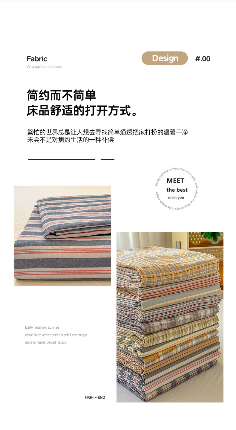 • 91家纺网 家纺一手货源 找家纺 (总)思诺羽床笠 2026新款亲肤云朵双层纱无印风水洗棉三件套四件套,浅咖条,布林灰,海蓝条,黄绿条,灰白条,简兮格,科隆绿格,米兰格,奶霜条,浅蓝条,映像格,云纱条