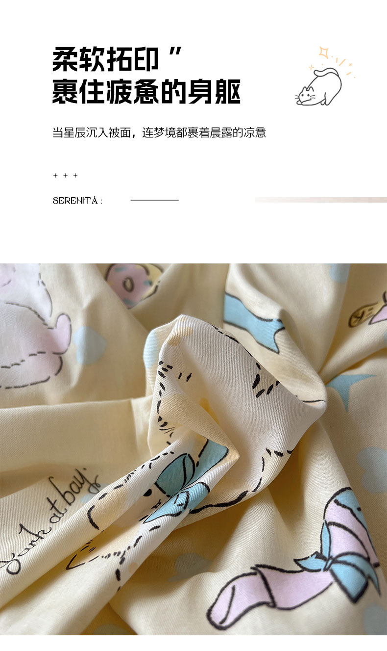 六巷胡同 2026新款40支全棉13070卡通单品被套 猫咪甜甜圈