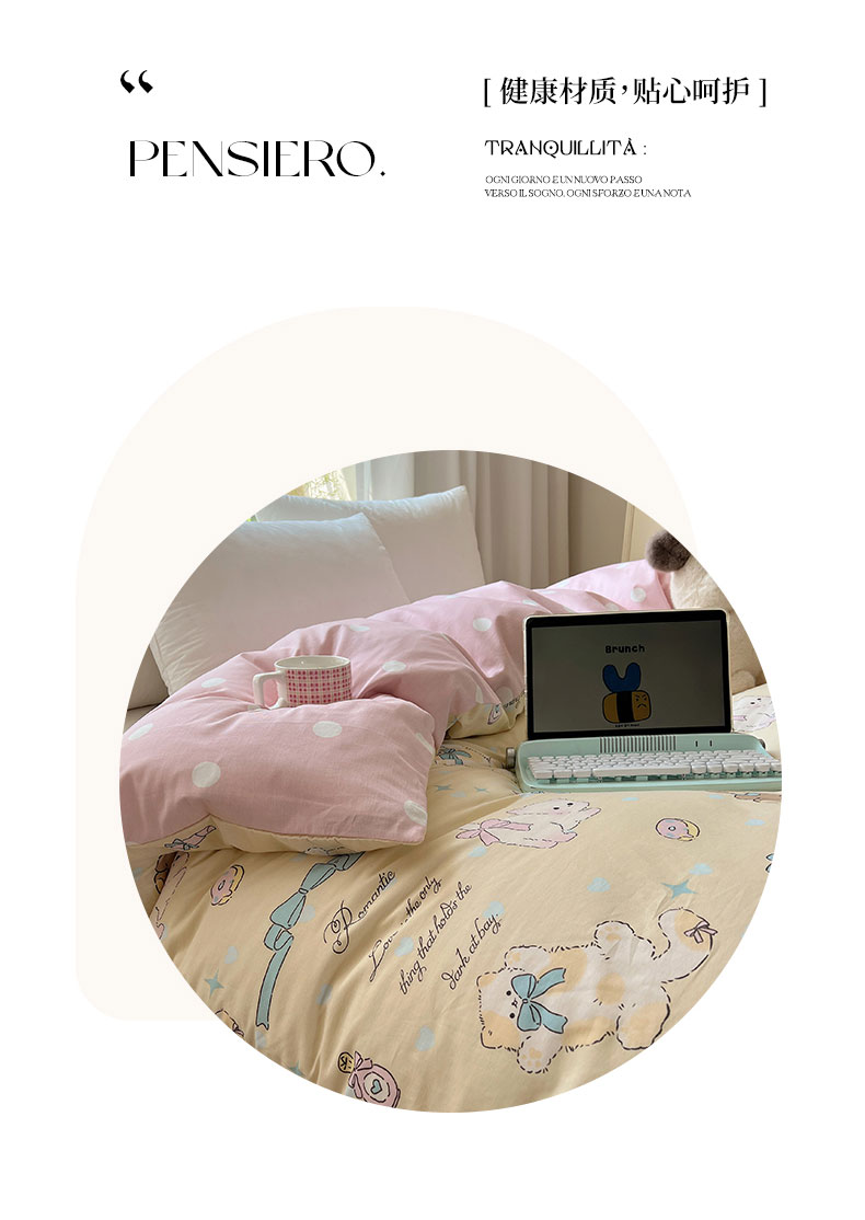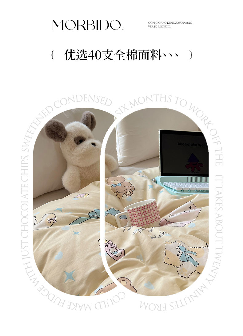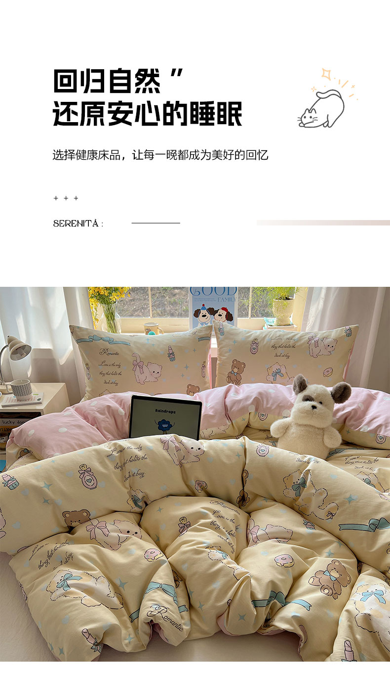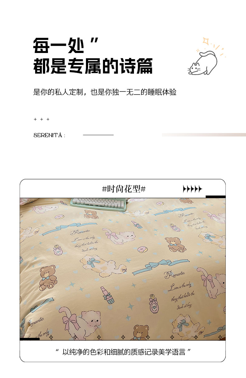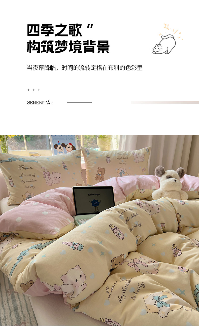 (总)六巷胡同 2025新款INS卡通童趣混搭风全棉四件套第二系,混搭-蛋糕围兜熊,混搭-奶油酣睡熊,混搭-奈斯羞羞狗,混搭-小蓝格甜点,混搭-雪糕哈皮熊,混搭-月亮睡睡熊