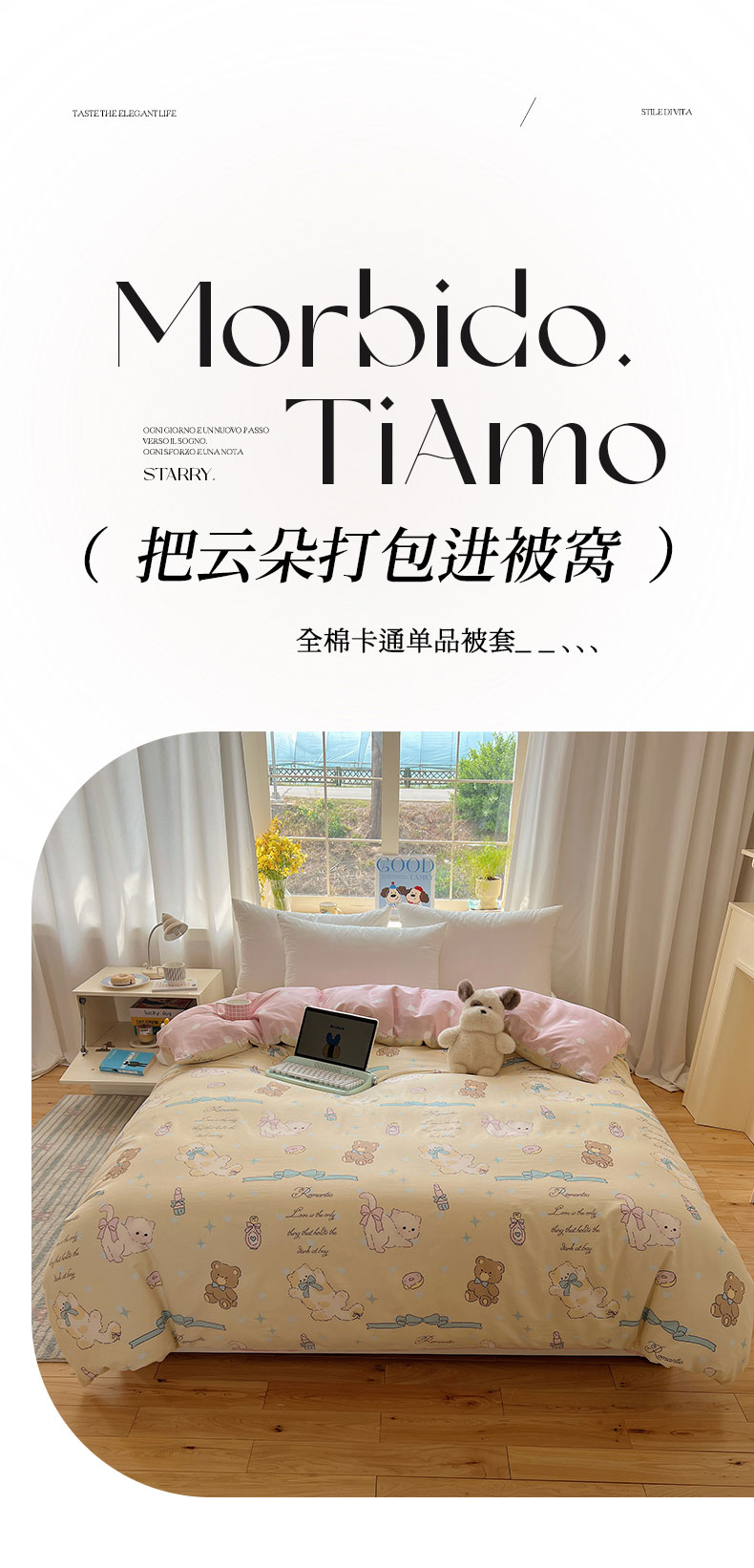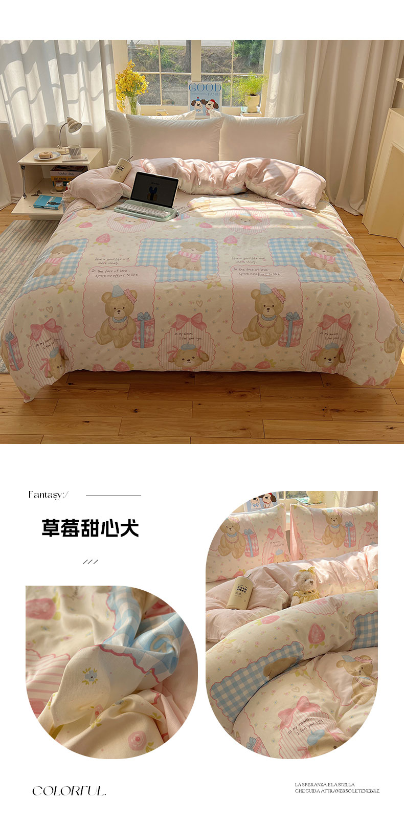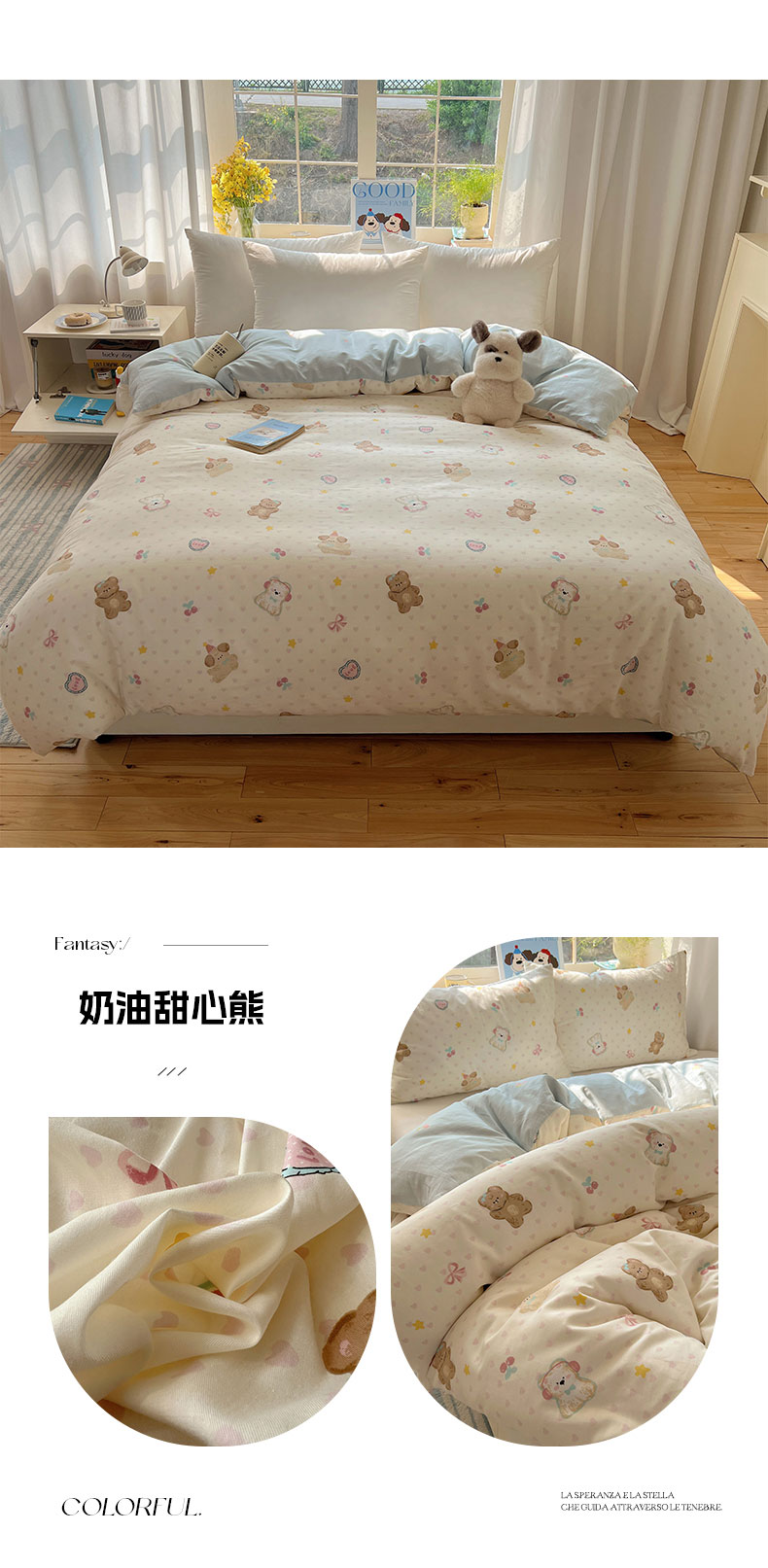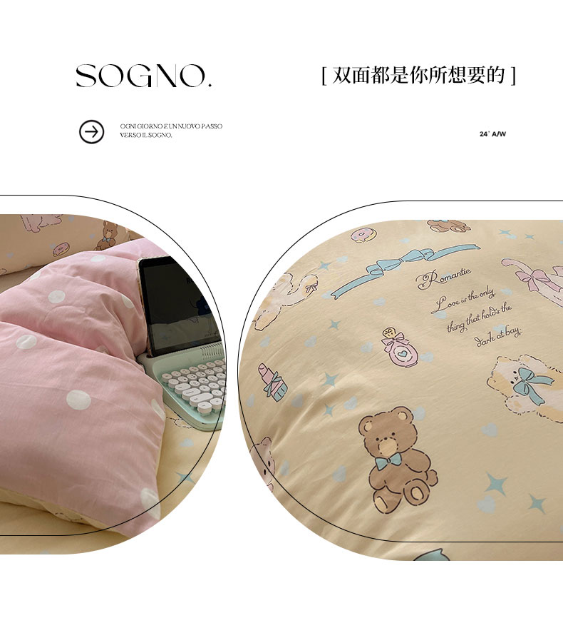 (总)六巷胡同 2025新款INS卡通童趣混搭风全棉四件套第二系,混搭-蛋糕围兜熊,混搭-奶油酣睡熊,混搭-奈斯羞羞狗,混搭-小蓝格甜点,混搭-雪糕哈皮熊,混搭-月亮睡睡熊