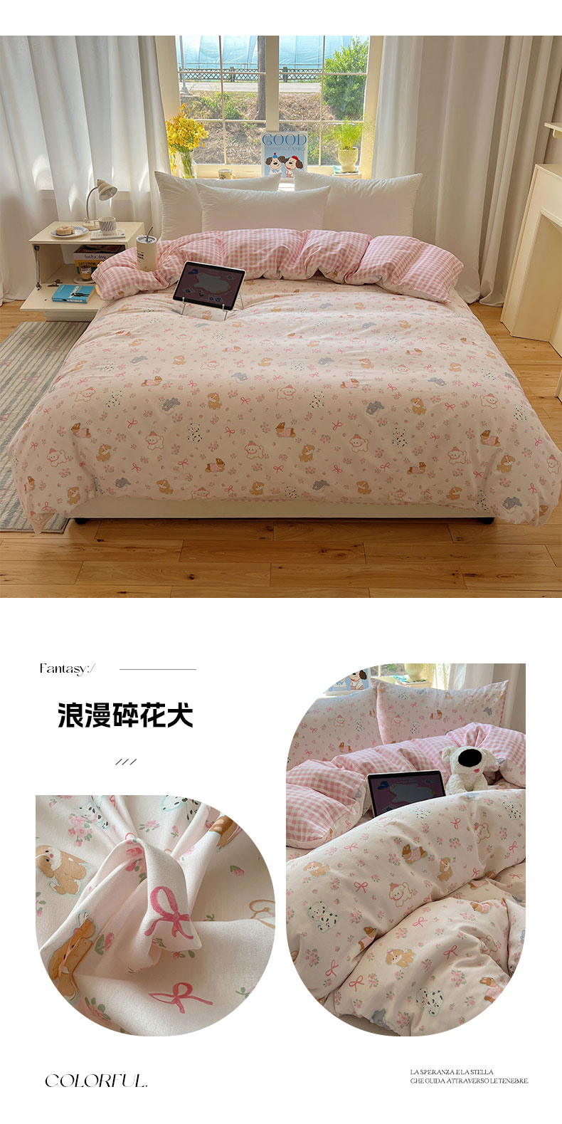 (总)六巷胡同 2025新款 INS减龄可爱风卡通全棉四件套第五系(森林音乐会系列),波点嘟嘟猫,点点面包犬,调皮蔷薇狗,哈喽泡芙猫,蓝格插画犬,森林音乐会