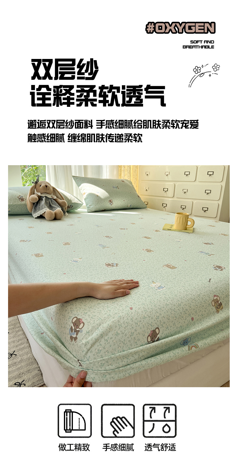 沐芷 2026 【提供买家秀】双层纱A类床笠单件/床笠三件套 床笠款床罩床垫保护套罩 幸运小象