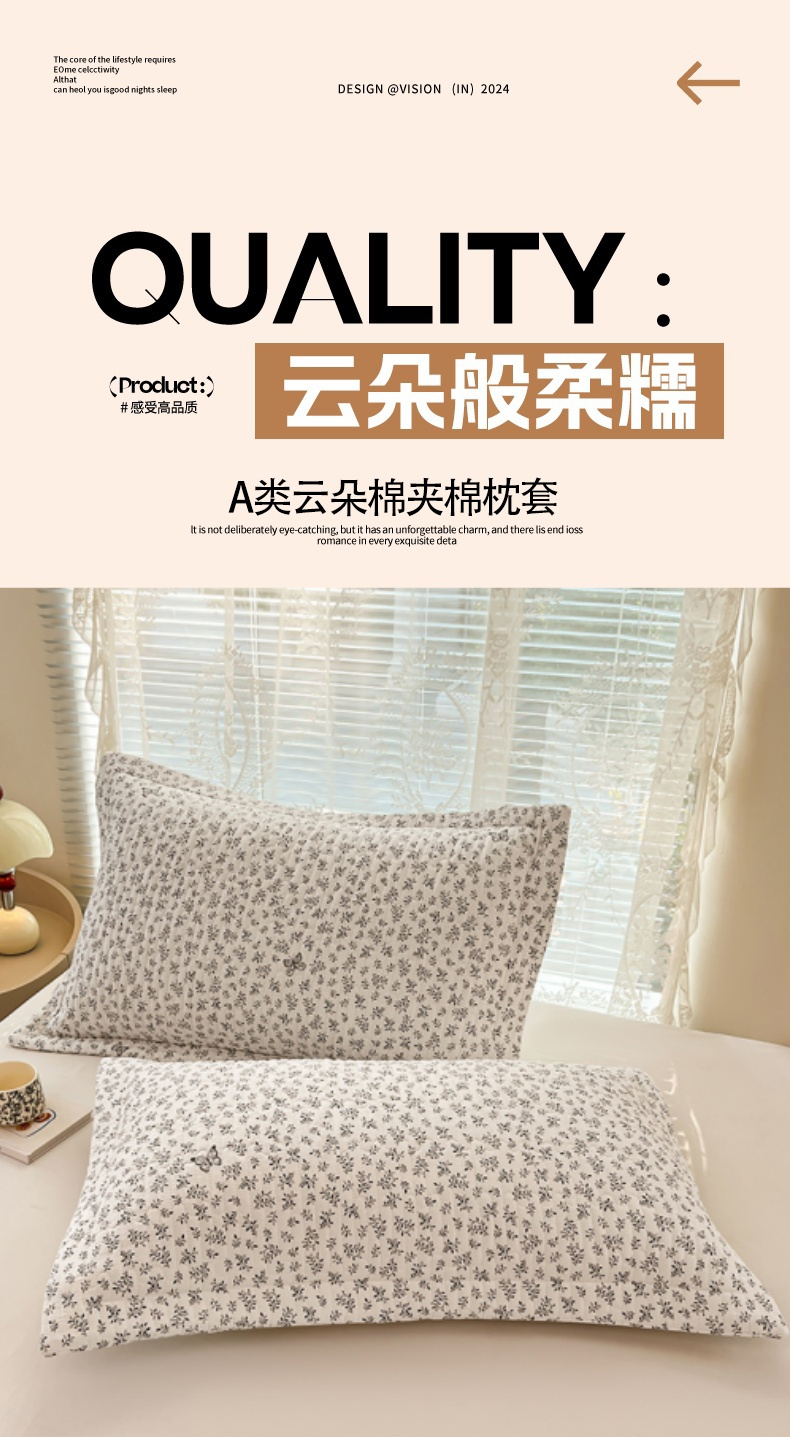 • 91家纺网 家纺一手货源 找家纺 圣比熊 2025新款A类云朵棉夹棉枕套宿舍单人一只装枕芯内胆套-单人枕套 花间迷离(压线夹棉)