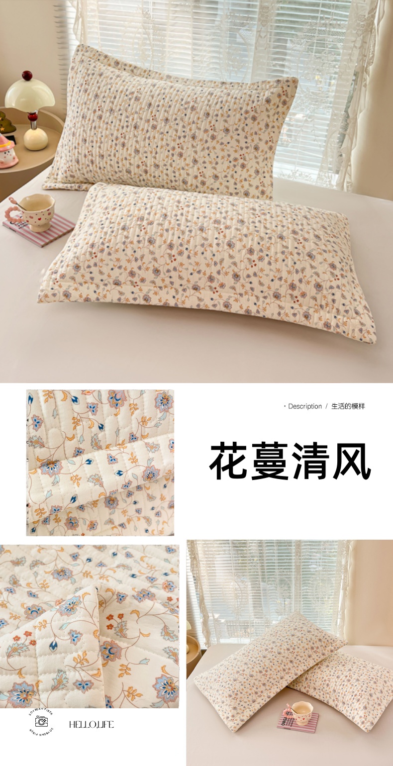 圣比熊 2025新款A类云朵棉夹棉枕套宿舍单人一只装枕芯内胆套-单人枕套 花间迷离(压线夹棉)