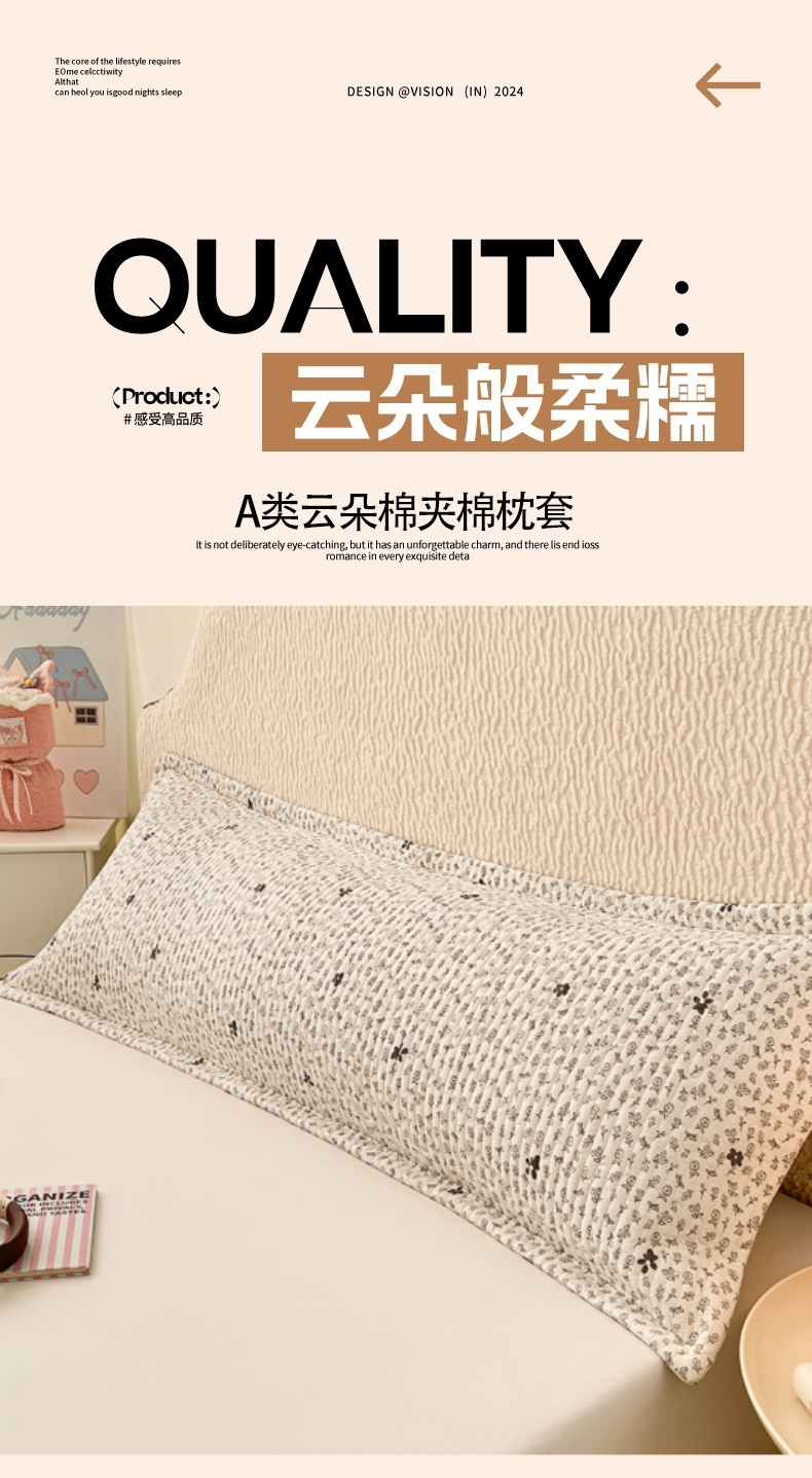 商品名称:梦舒羽 2025新款A类云朵棉夹棉枕套宿舍情侣双人加长枕芯内胆套 花无意(压线夹棉)