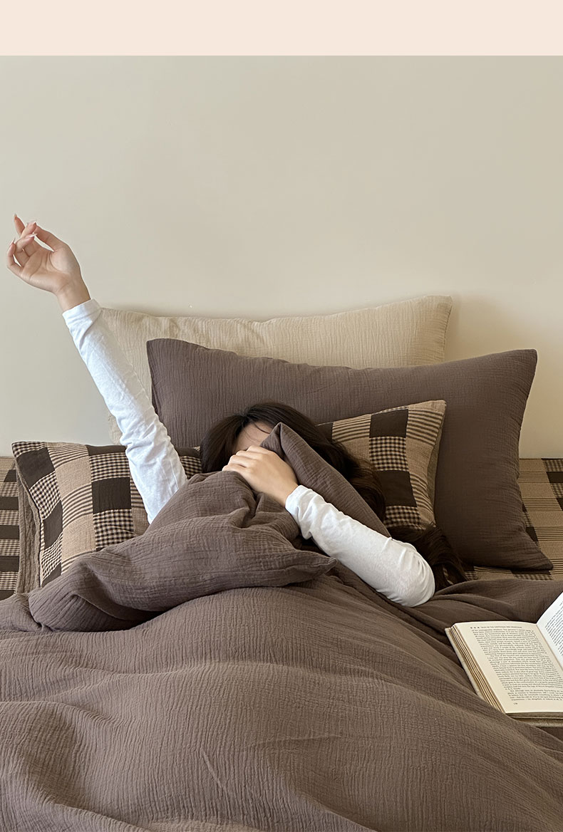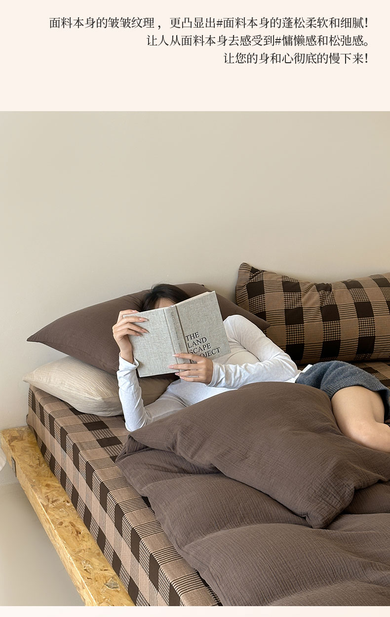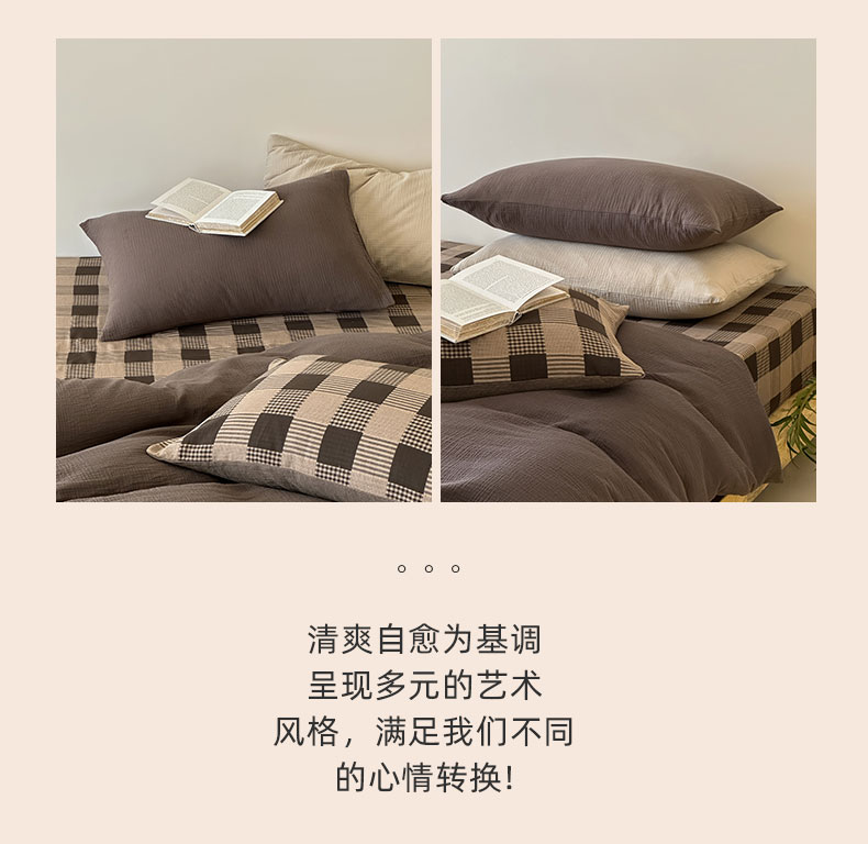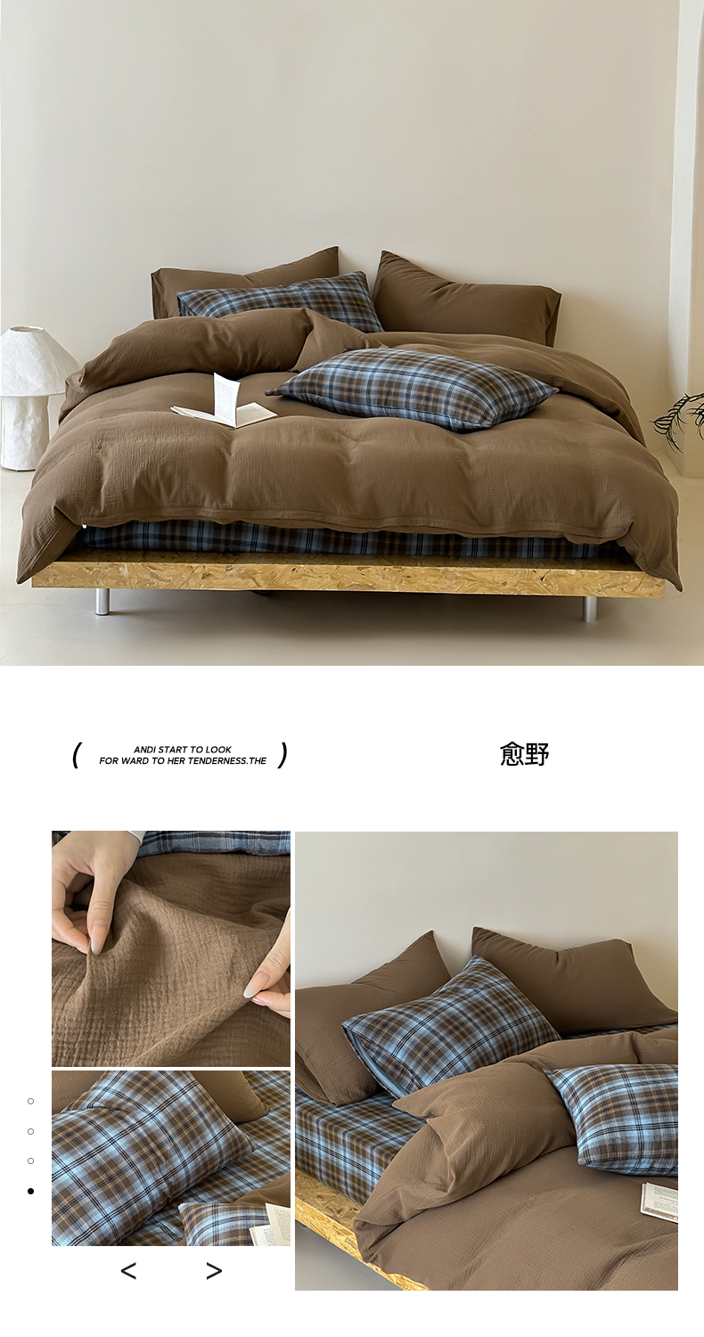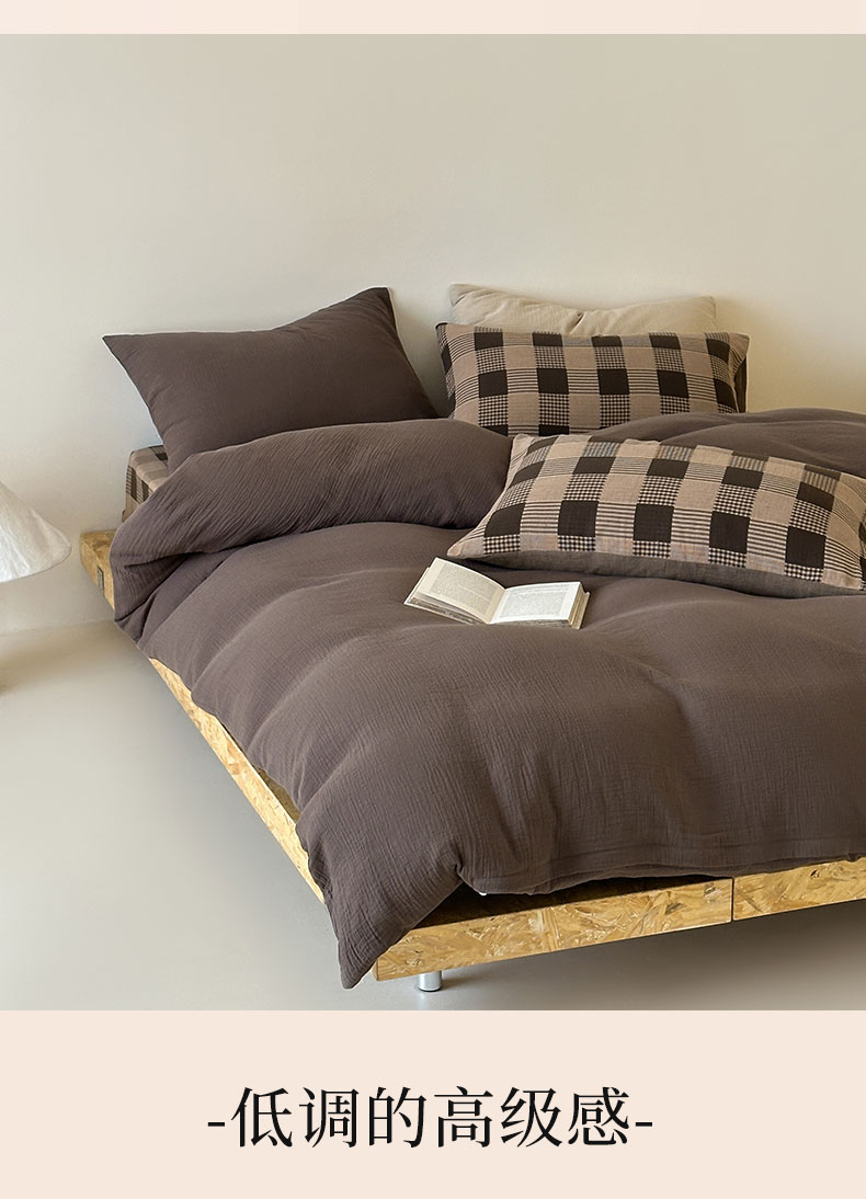 商品名称:山舍家居 2026新款全棉色织双层皱皱纱色织格子皱纱纯色混搭系列四件套 织界