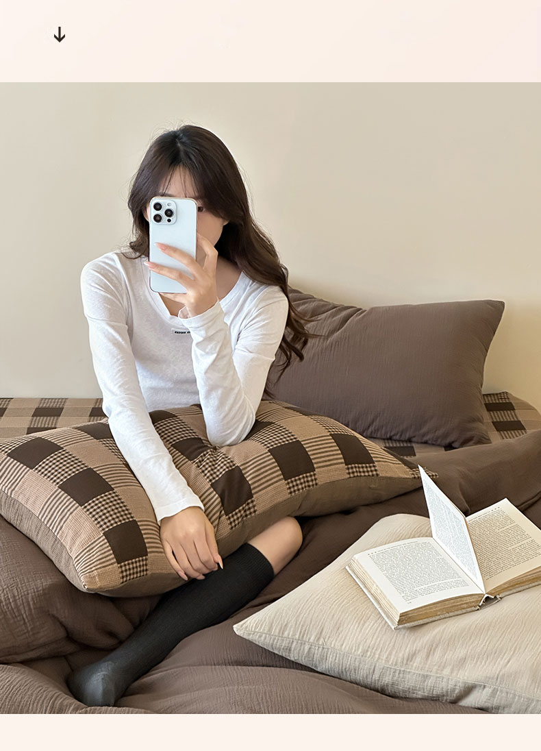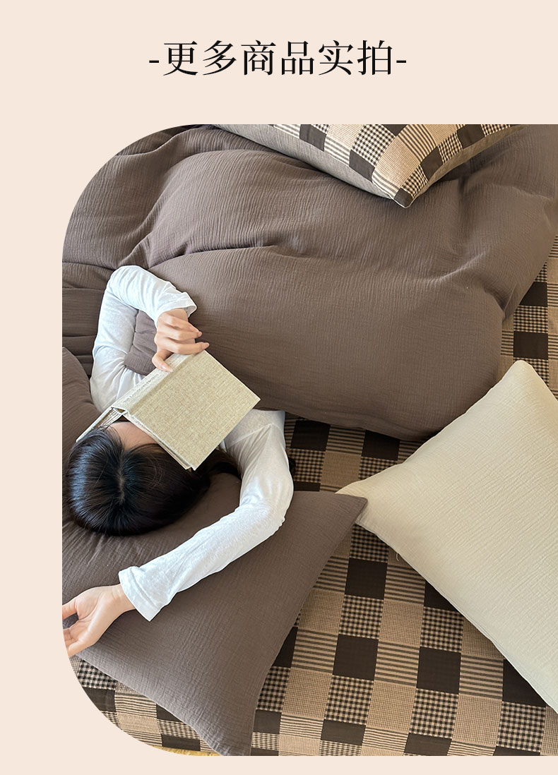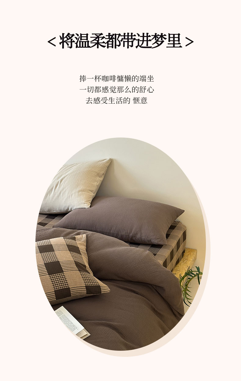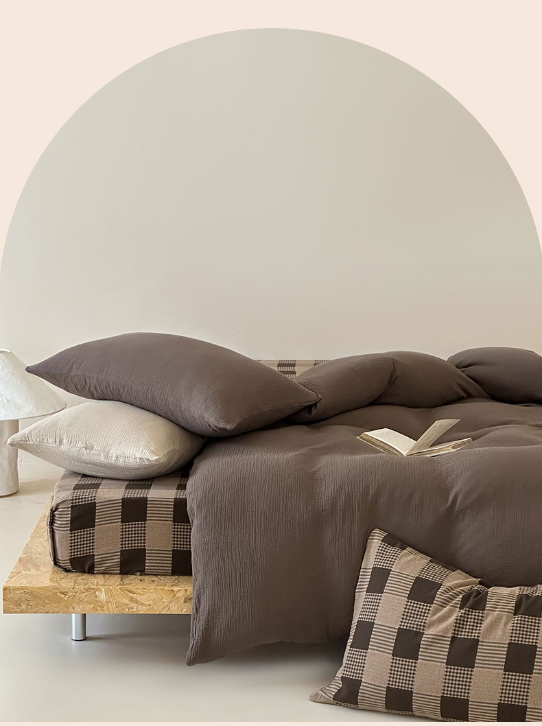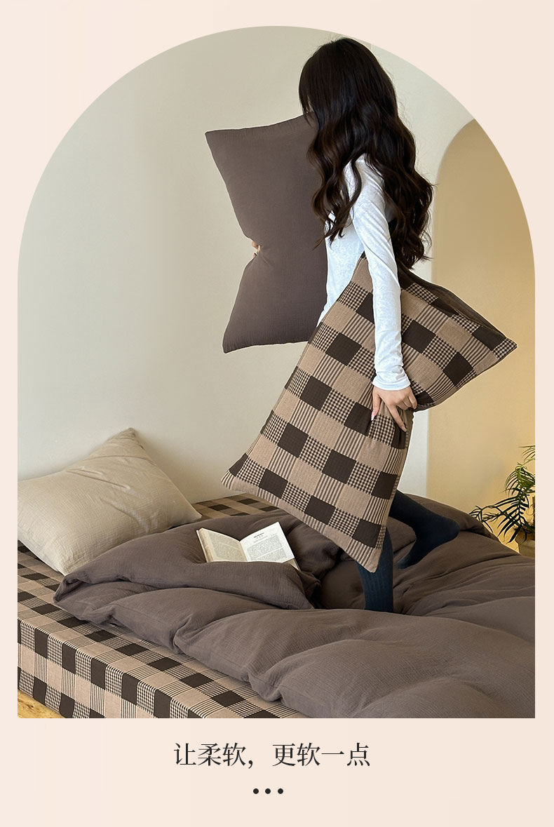商品名称:山舍家居 2026新款全棉色织双层皱皱纱色织格子皱纱纯色混搭系列四件套 织界