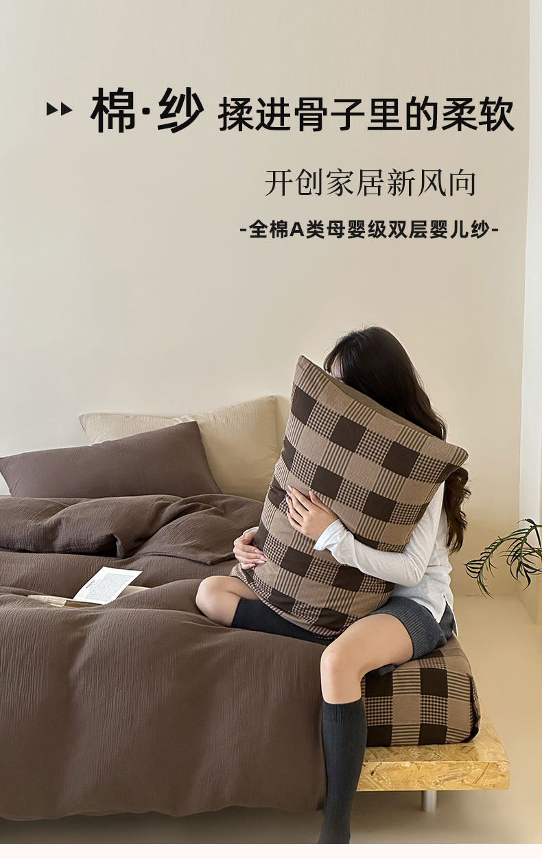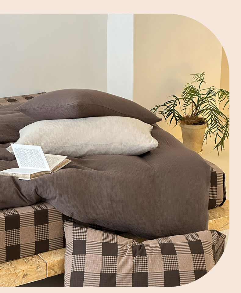 山舍家居 2026新款全棉色织双层皱皱纱色织格子皱纱纯色混搭系列四件套 织界