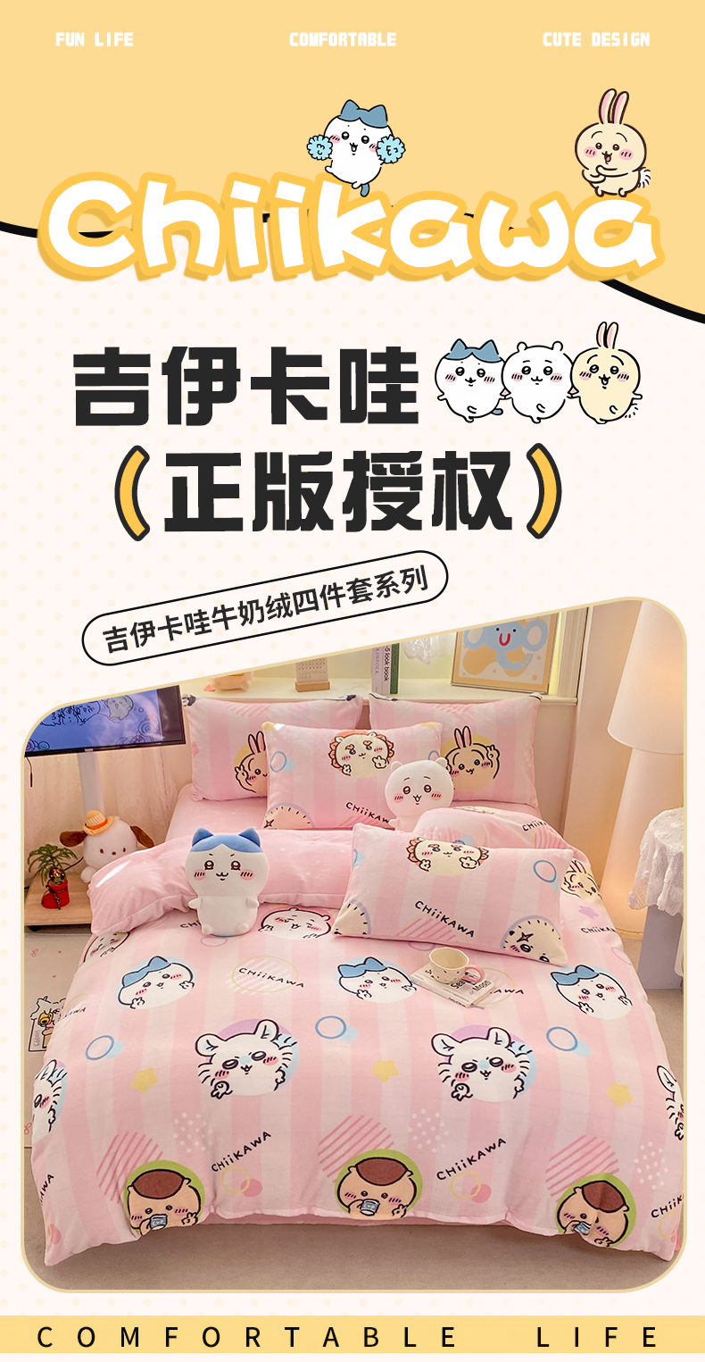 当前位置: 91家纺网 > 商品网购 > 床品套件 > 四件套 > 牛奶绒四件套 > 博雅 2026新款卡哇正版授权高克重牛奶绒四件套 绒家族吉伊卡哇