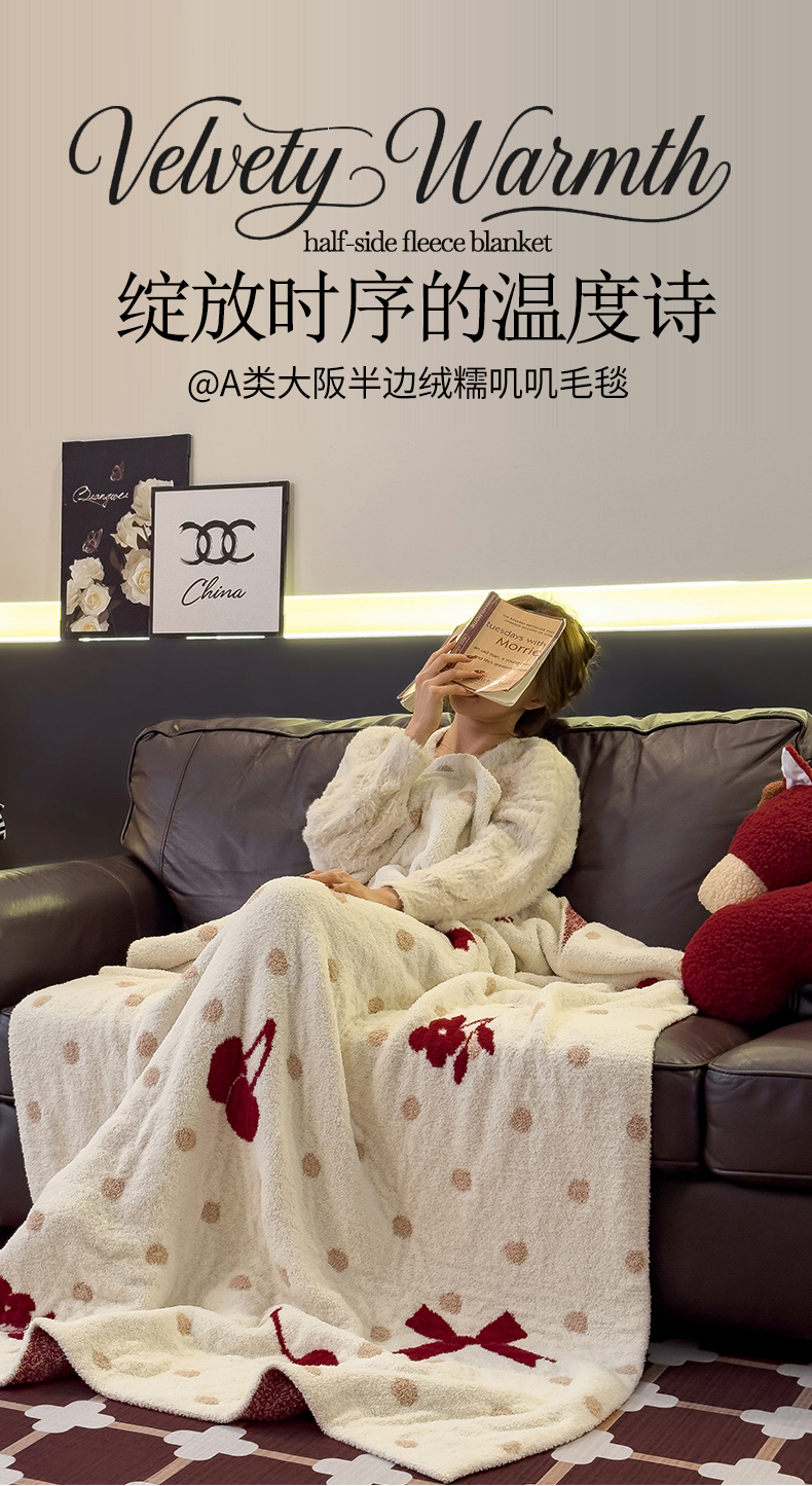 商品名称:兄弟坊 2026新款A类大阪半边绒糯叽叽毛毯 盖毯 午睡毯 夏被毯 披肩毯 糯叽叽半边绒-蝴蝶结