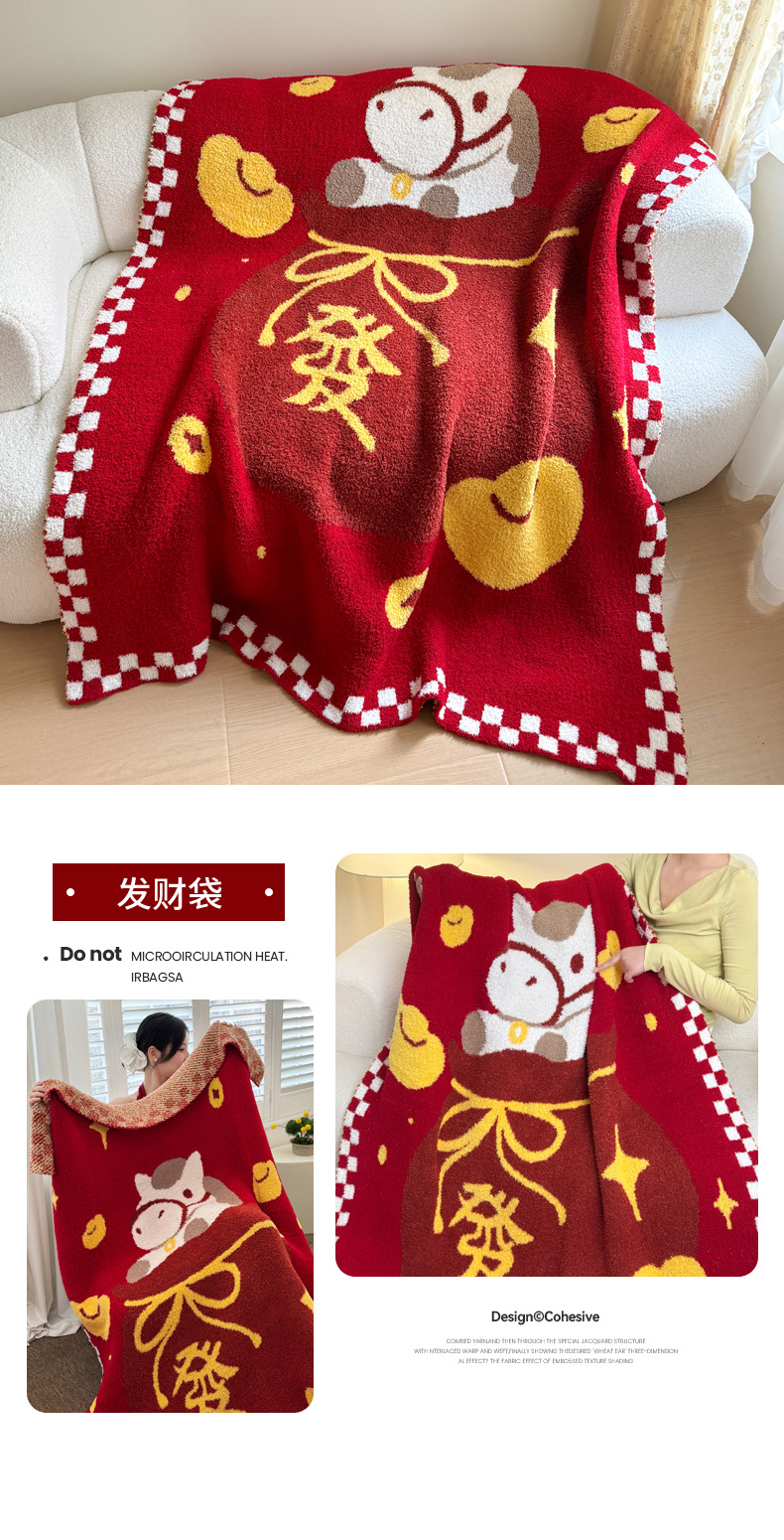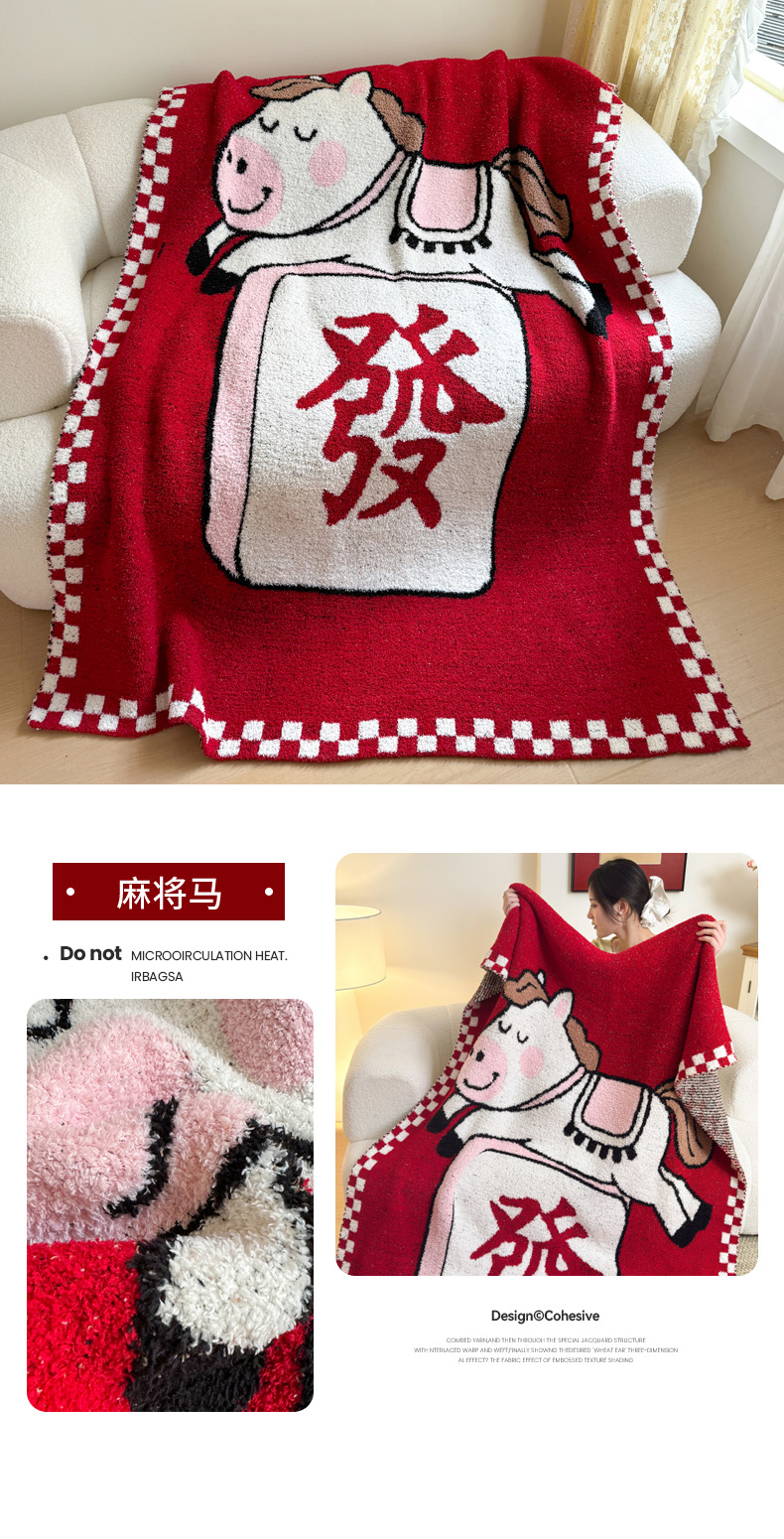 (总)丹本家纺 2026新款A类软糯半边绒毛毯毯子马年暖心针织毯,发财袋,麻将马,小马独角兽,元宝马,包装