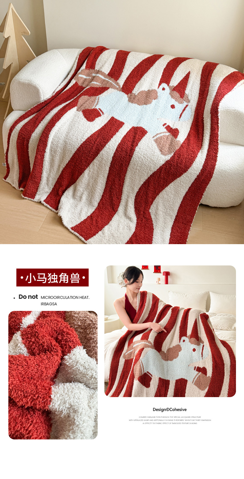 商品名称:丹本家纺 2026新款A类软糯半边绒毛毯毯子马年暖心针织毯 小马独角兽
