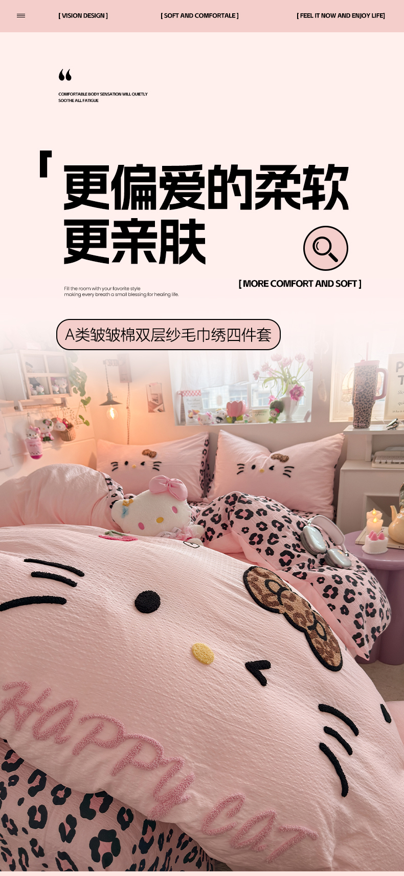 当前位置: 91家纺网 > 商品网购 > 床品套件 > 四件套 > 其它四件套 > 卡斯诺家纺馆 2026新款皱皱棉双层纱毛巾绣四件套(下载文件包含买家秀) 摩登猫咪-玉粉
