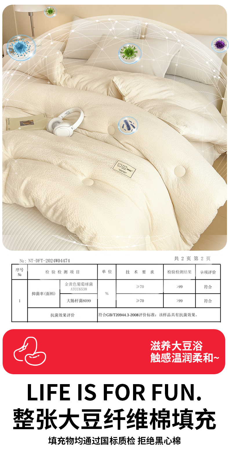 (总)好尚居 2026新款纯色亲肤皱皱纱大豆纤维被被子被芯,本白,浅灰,浅绿,玉色