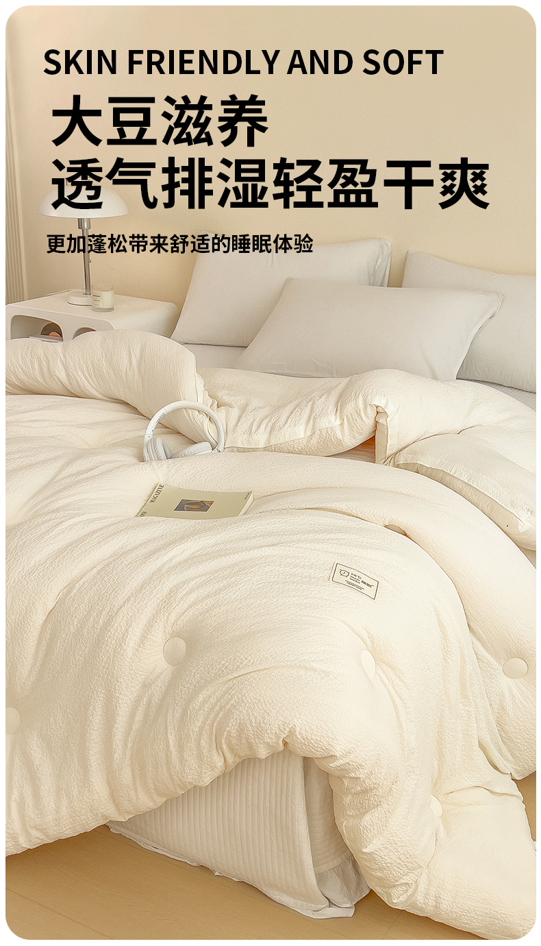 • 91家纺网 家纺一手货源 找家纺 (总)好尚居 2026新款纯色亲肤皱皱纱大豆纤维被被子被芯,本白,浅灰,浅绿,玉色