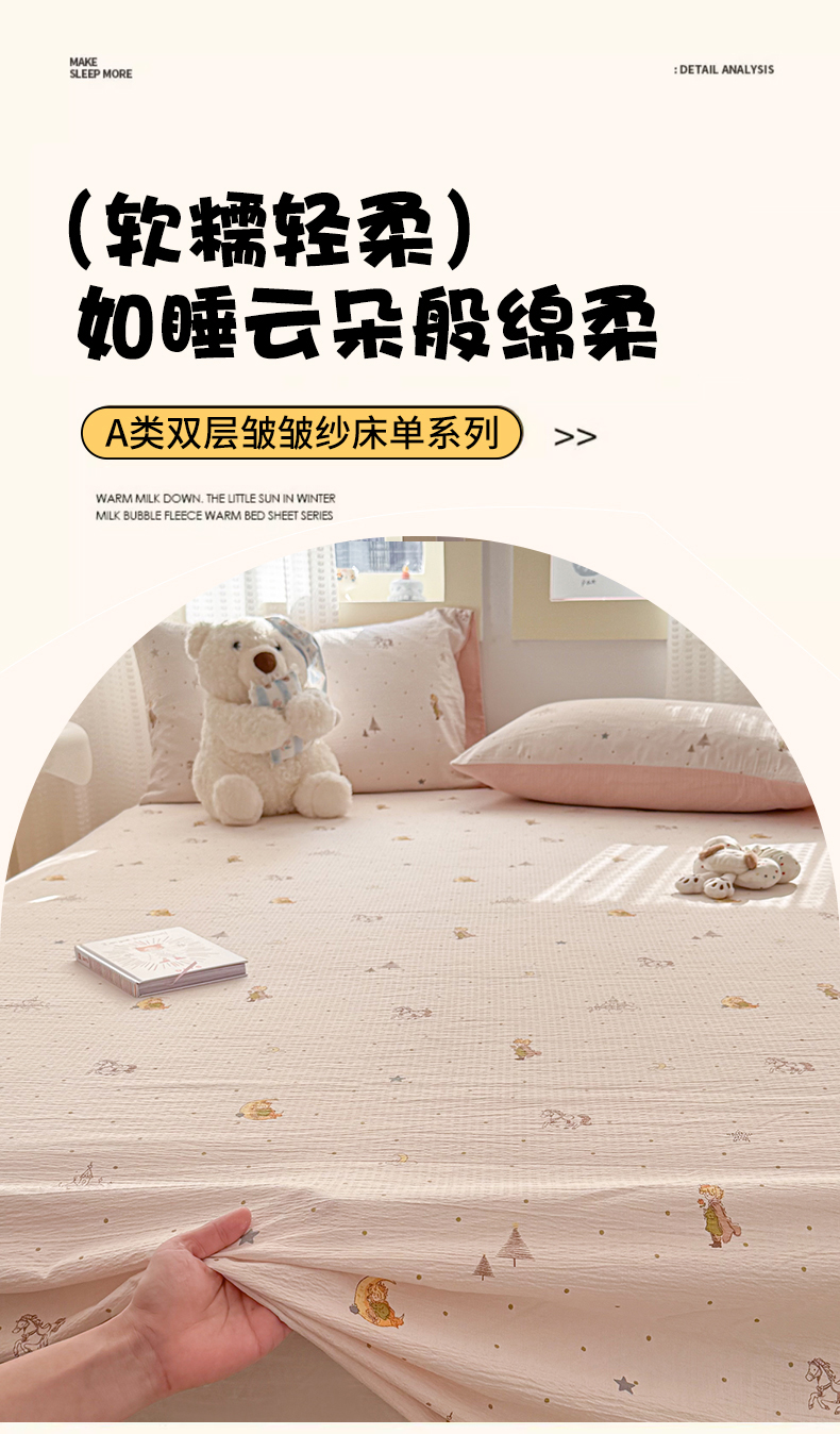 (总)丽美人家纺 2026新款双层皱皱纱大豆夹棉床笠单床笠床笠单件,JM花开漫漫,JM贝拉,JM布兰卡,JM粉格猫咪,JM格仔萌宠,JM可爱小狗,JM腊肠狗,JM乐园,JM玛丽,JM时光,JM月境骑踪,JM紫雾叶兔
