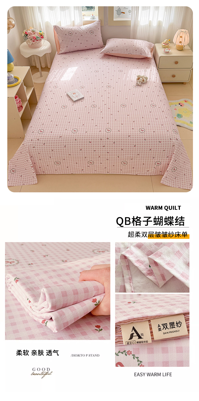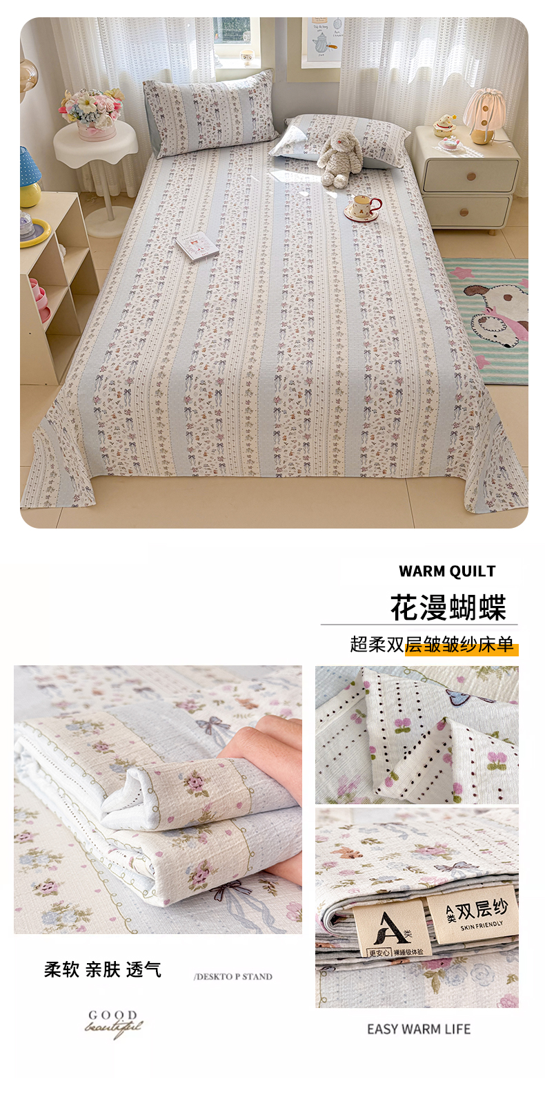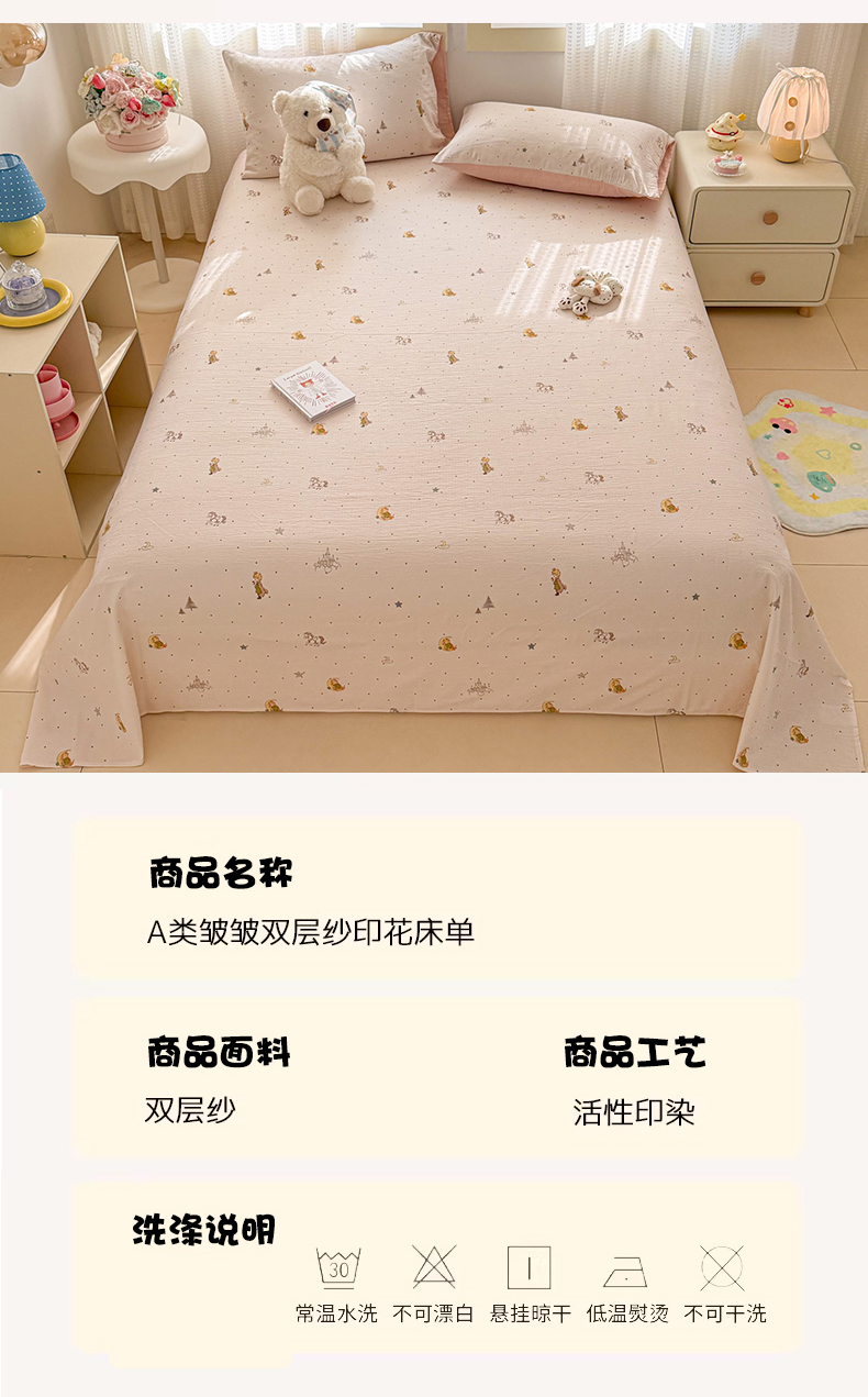 • 91家纺网 家纺一手货源 找家纺 丽美人家纺 2026新款A类皱皱双层纱印花单床单床单单件 月境骑踪
