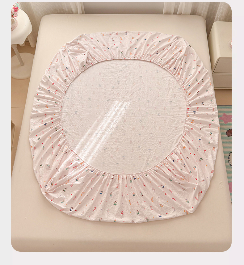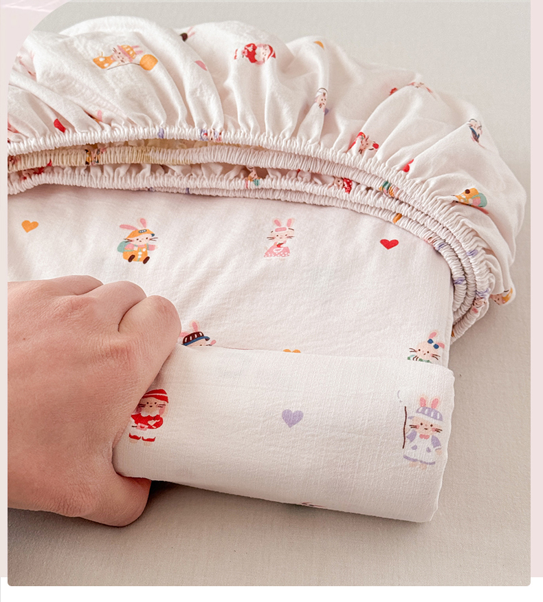丽美人家纺 2026新款A类柔软双层皱皱纱印花单床笠床笠单件 桃心萌兔集