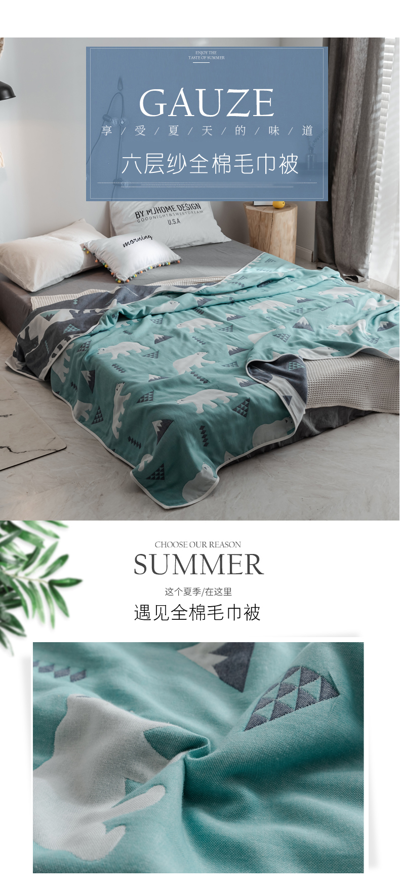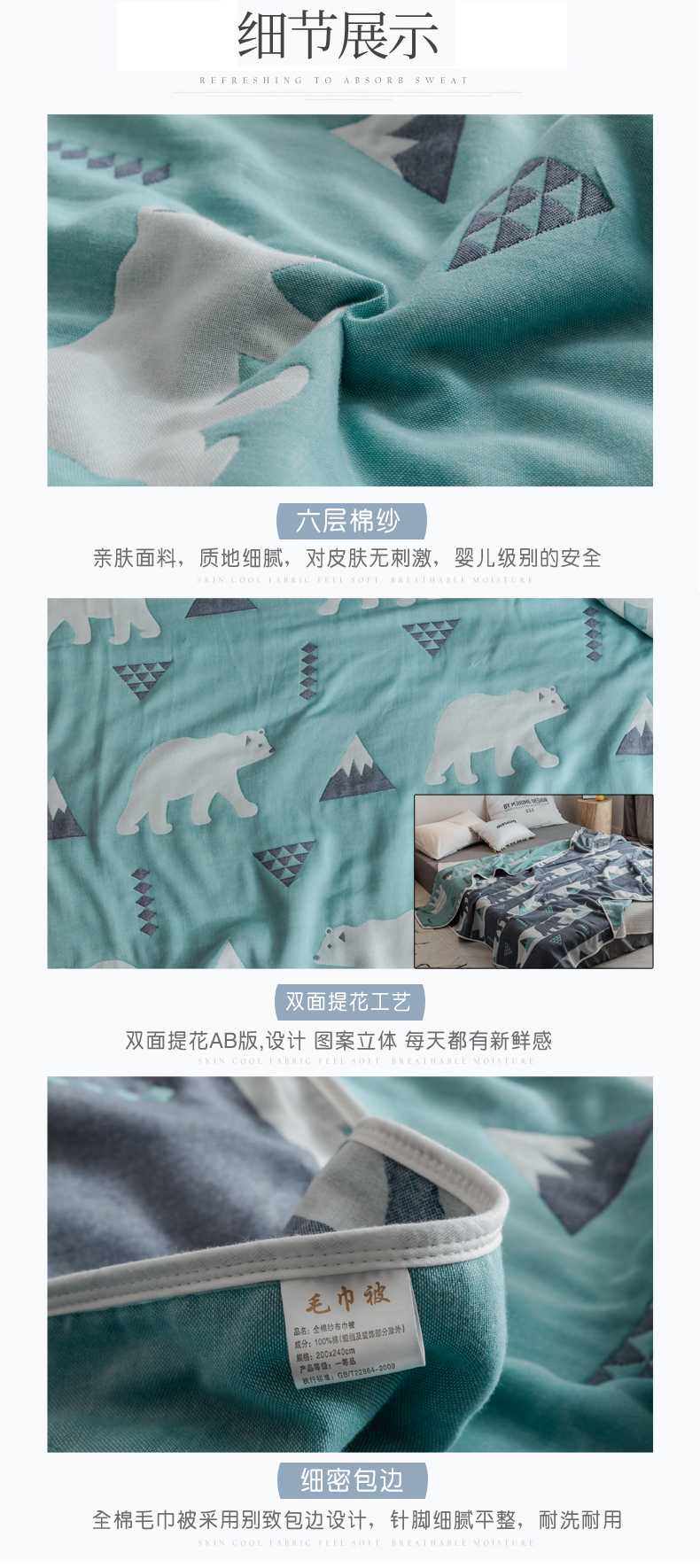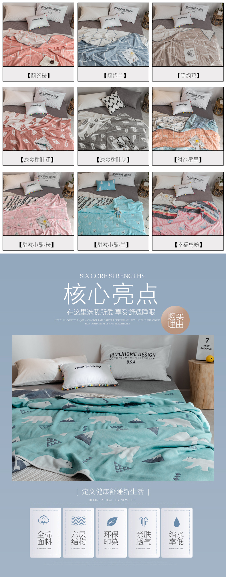 商品名称:(总)朴尔家纺-毛巾被 2026新款经典六层纱布全棉毛巾被系列-朴尔经典款常年备货
