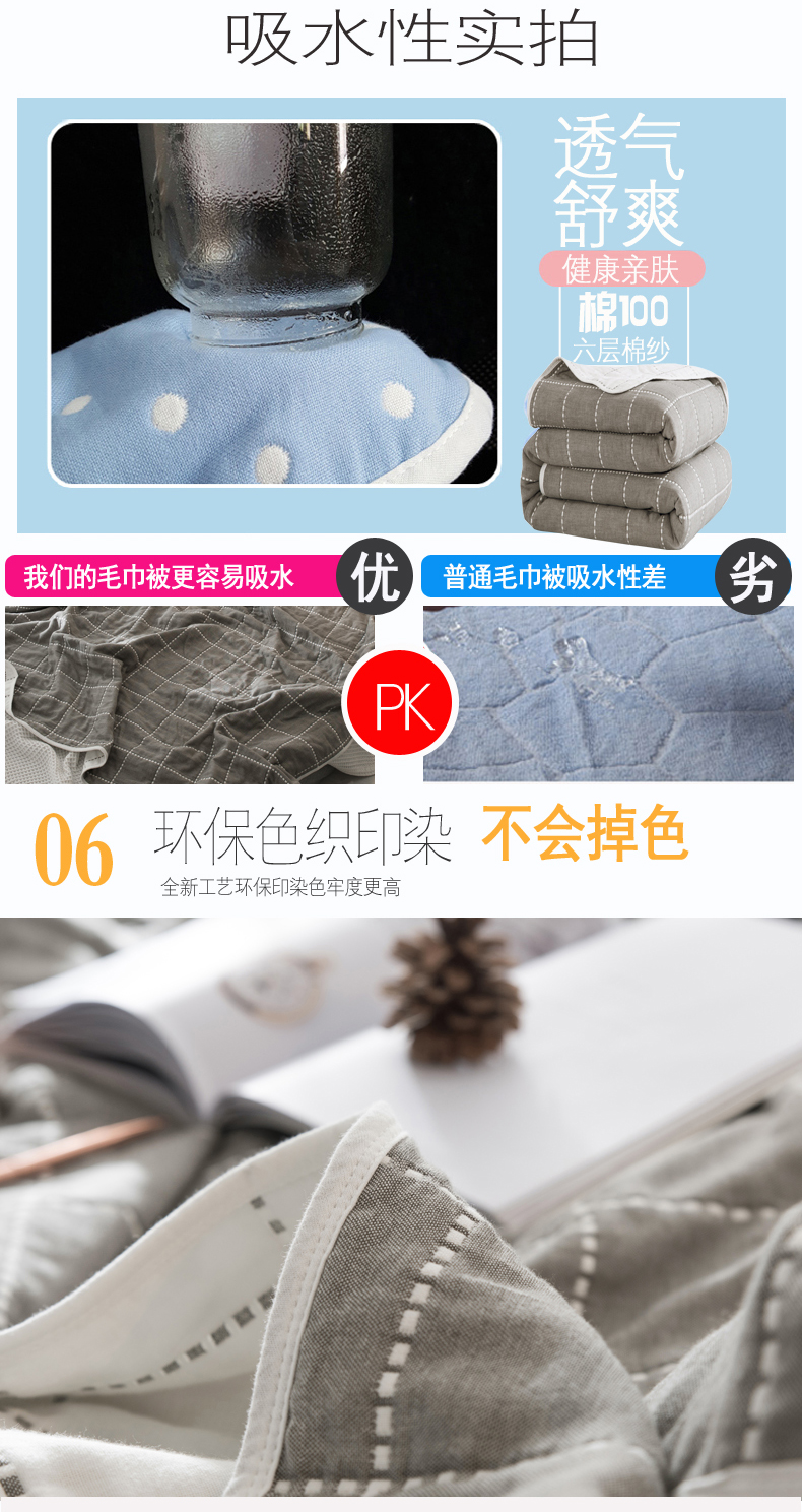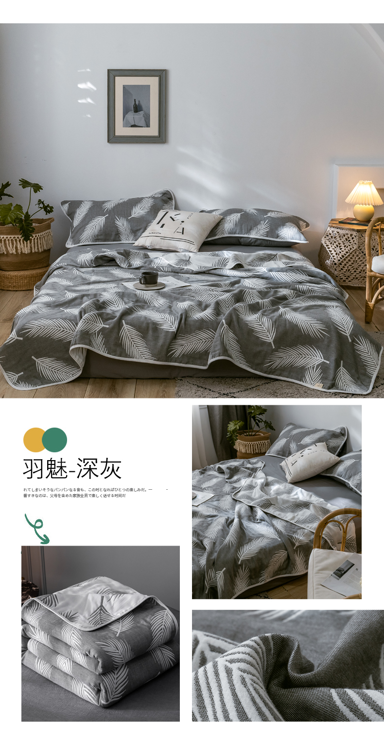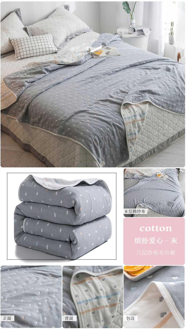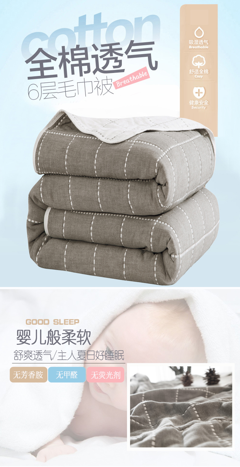 朴尔家纺-毛巾被 2026新款经典六层纱布全棉毛巾被系列-朴尔经典款常年备货 时尚虚线-灰色