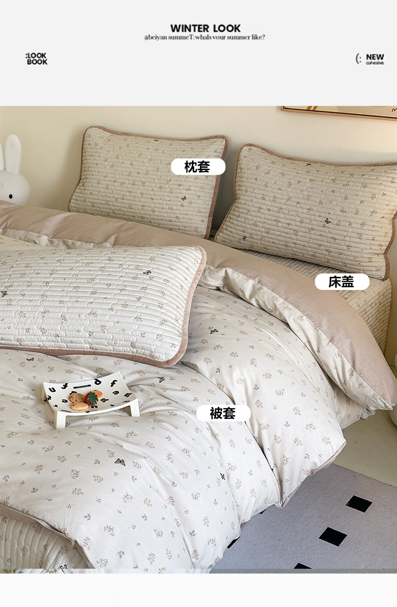 凌云家纺 2026新款A类13372全棉床盖四件套 春汐