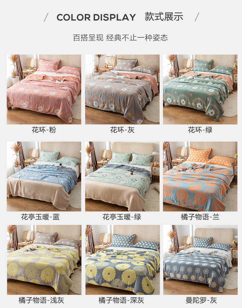 被子 > 夏被 > 朴尔家纺-毛巾被 2026春夏新款四层韩版碎花风全棉纯棉纱布毛巾被夏被夏凉被空调被-经典款常年备货 花环-灰