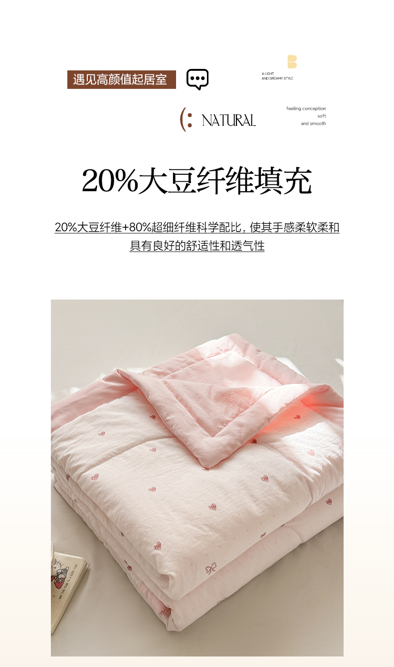 (总)心悦家纺 2025新款99A类全棉原棉大豆蛋白被,豆沙,灰色,原棉白