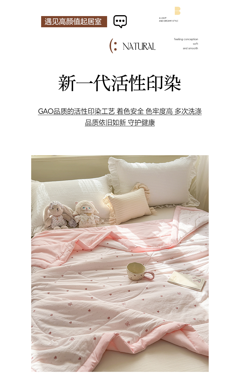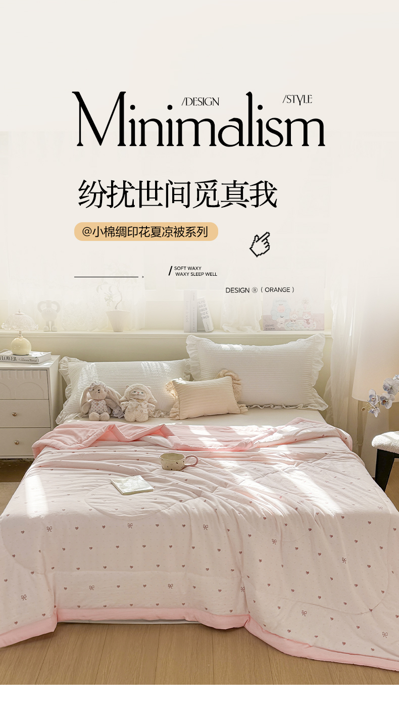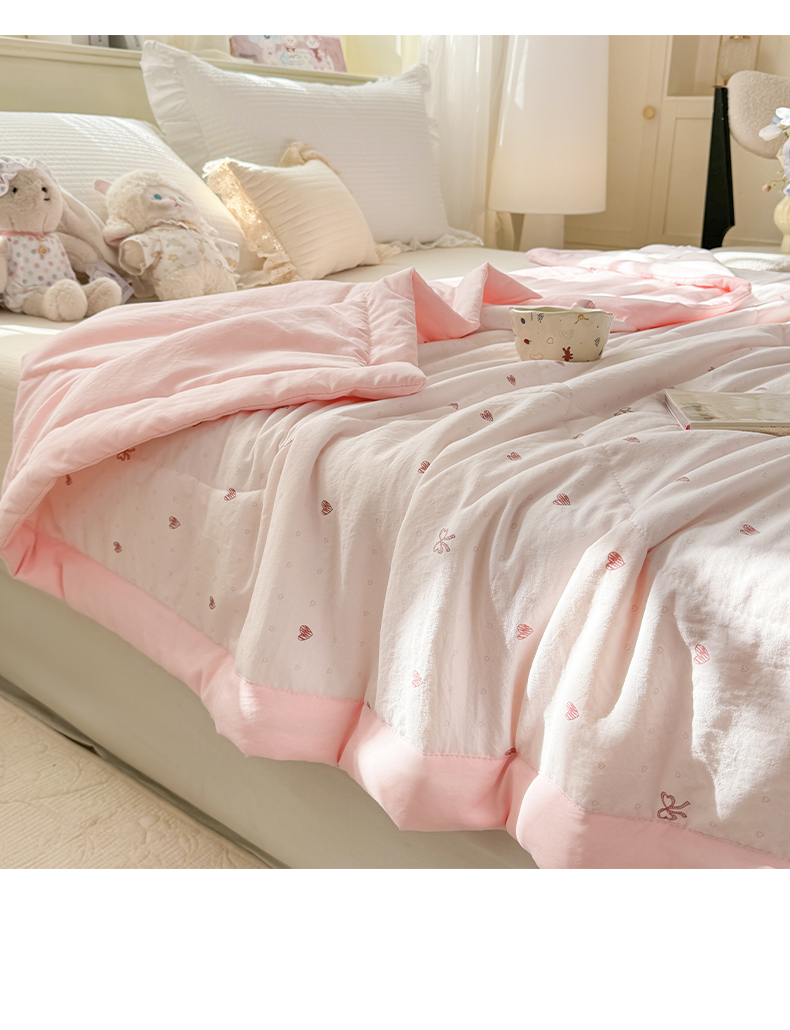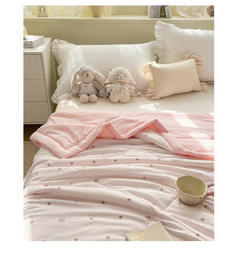 心悦家纺 2026新款小棉绸印花夏凉被空调被夏被系列 心相印粉