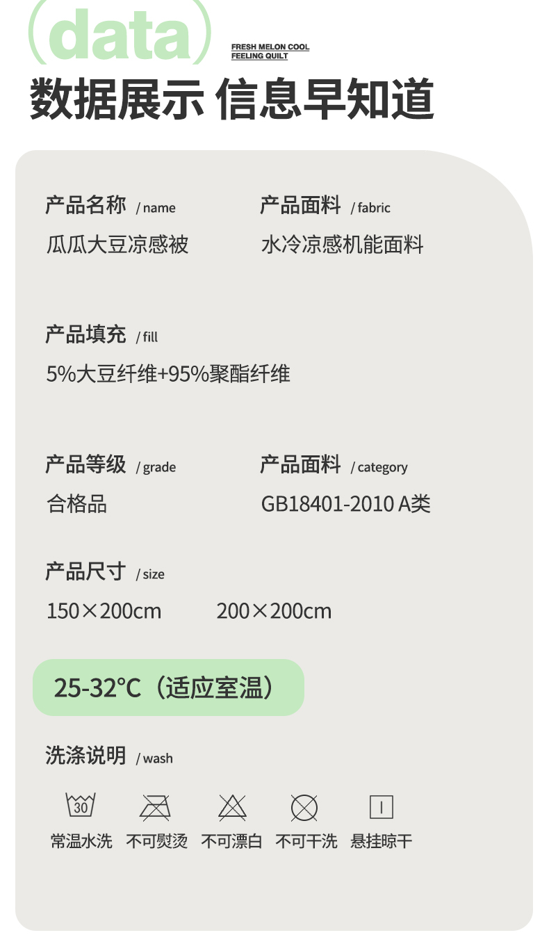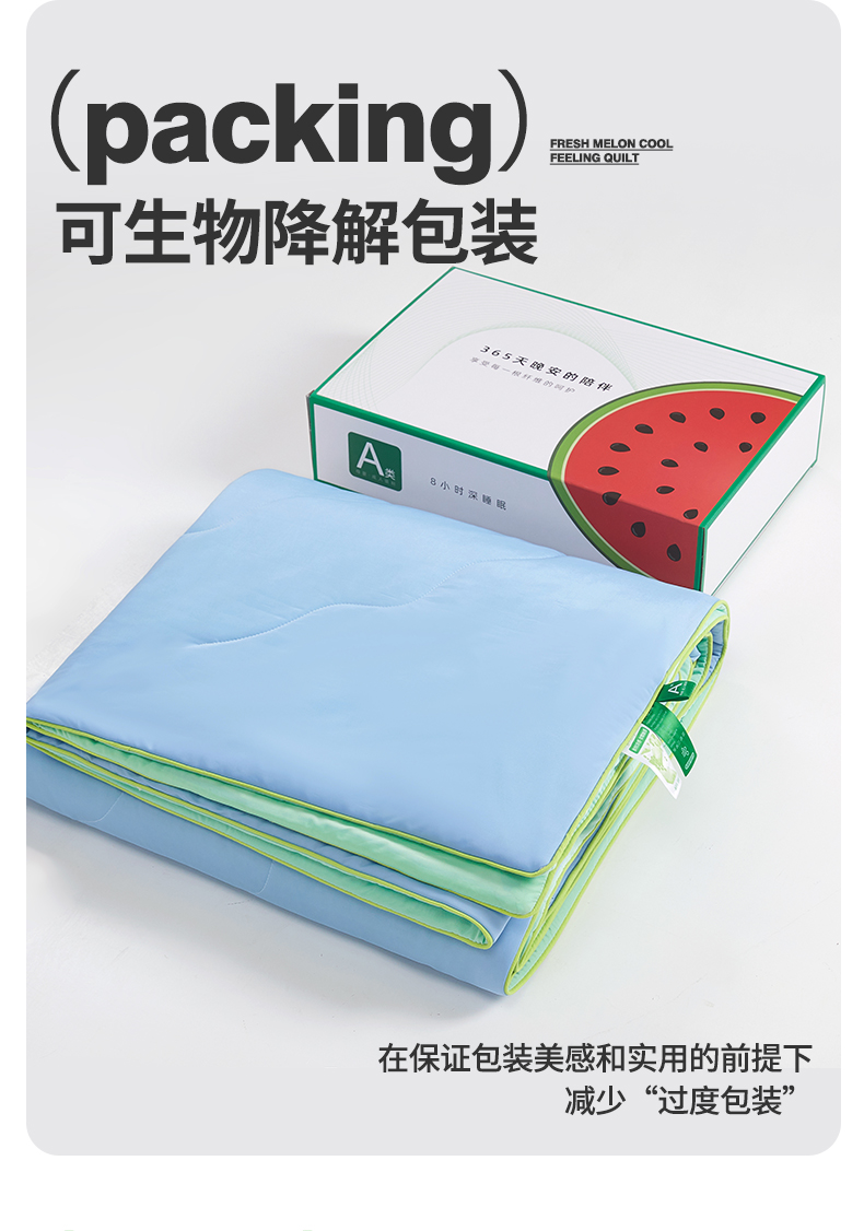 商品名称:爱彼家纺 2026新款A类氨纶凉感丝西瓜大豆空调被夏被夏凉被(控价最低79.9/89.9/99.9) 瓜瓜被-蜜蓝绿