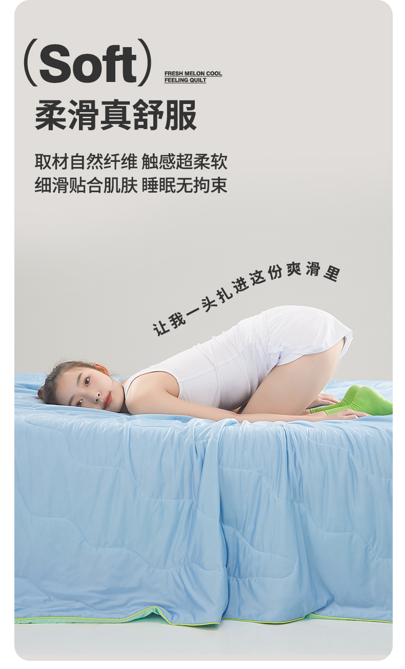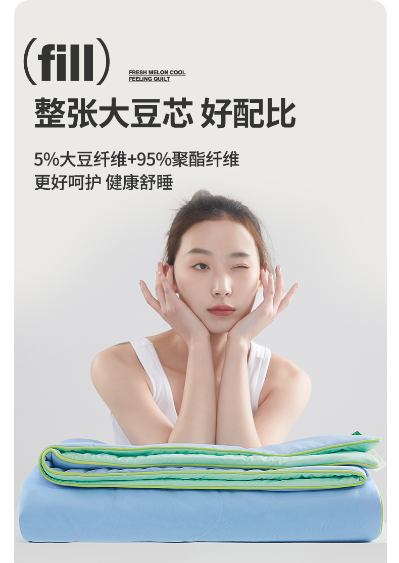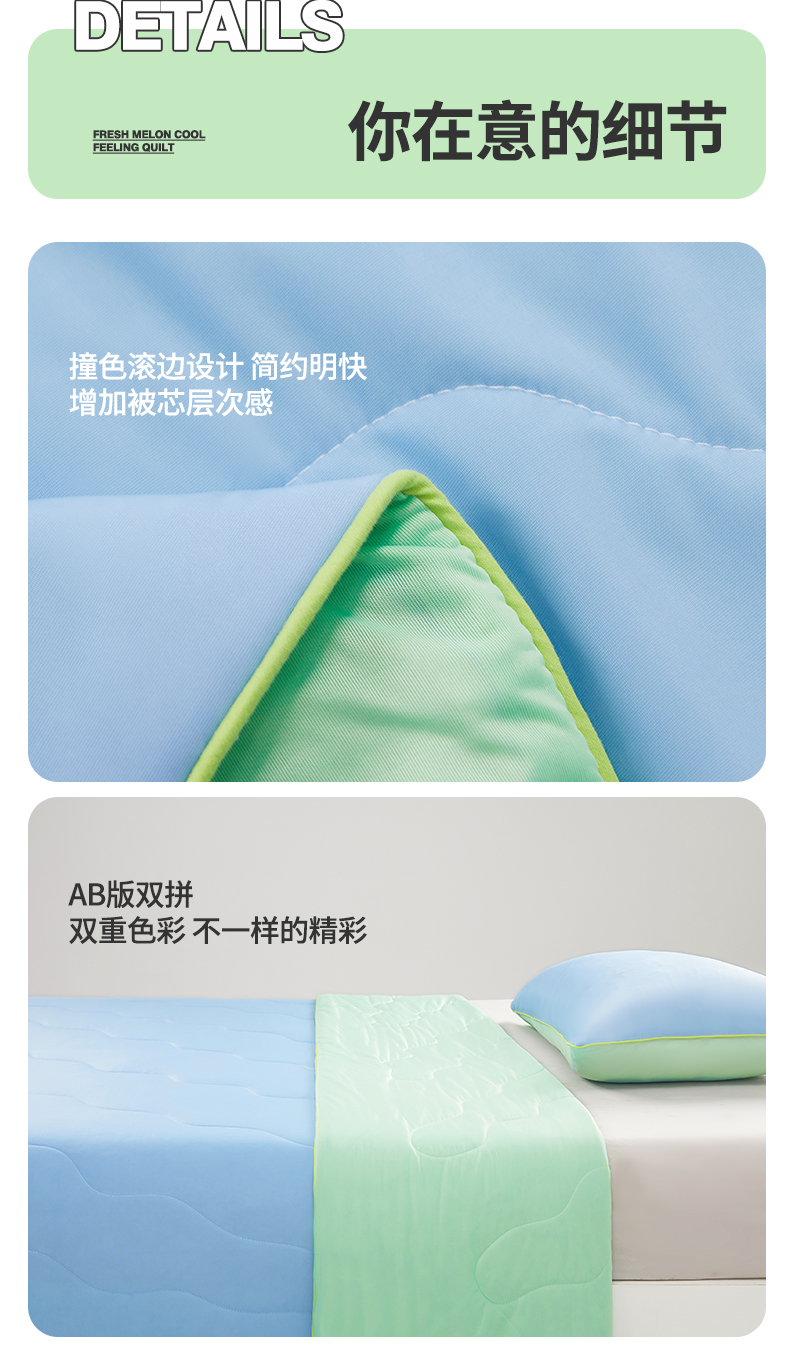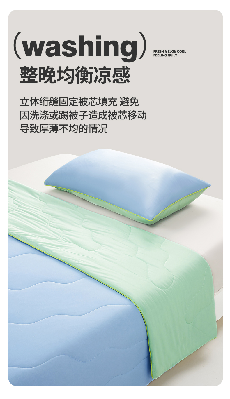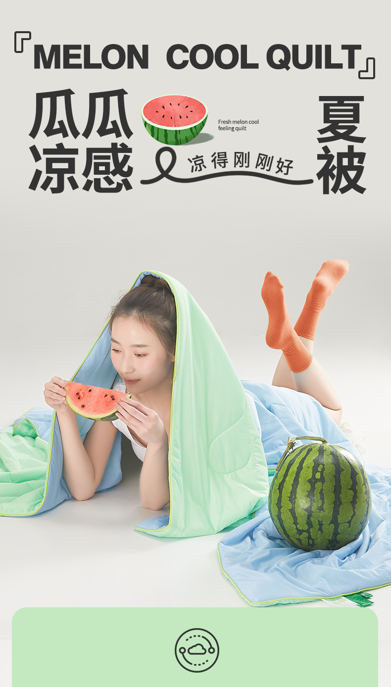 被子 > 夏被 > 爱彼家纺 2026新款A类氨纶凉感丝西瓜大豆空调被夏被夏凉被(控价最低79.9/89.9/99.9) 瓜瓜被-蜜蓝绿