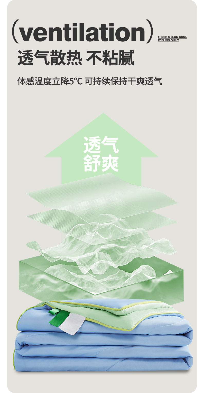 爱彼家纺 2026新款A类氨纶凉感丝西瓜大豆空调被夏被夏凉被(控价最低79.9/89.9/99.9) 瓜瓜被-蜜蓝绿