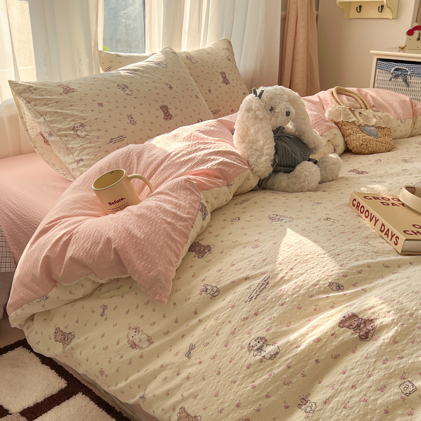 (总)童颜 2025新款超柔水洗双层纱豹纹贴布绣印花四件套-场景二,豹纹猫咪粉,豹纹猫咪粉+酷黑,豹纹猫咪粉+玫红,豹纹猫咪咖,豹纹猫咪浅蓝