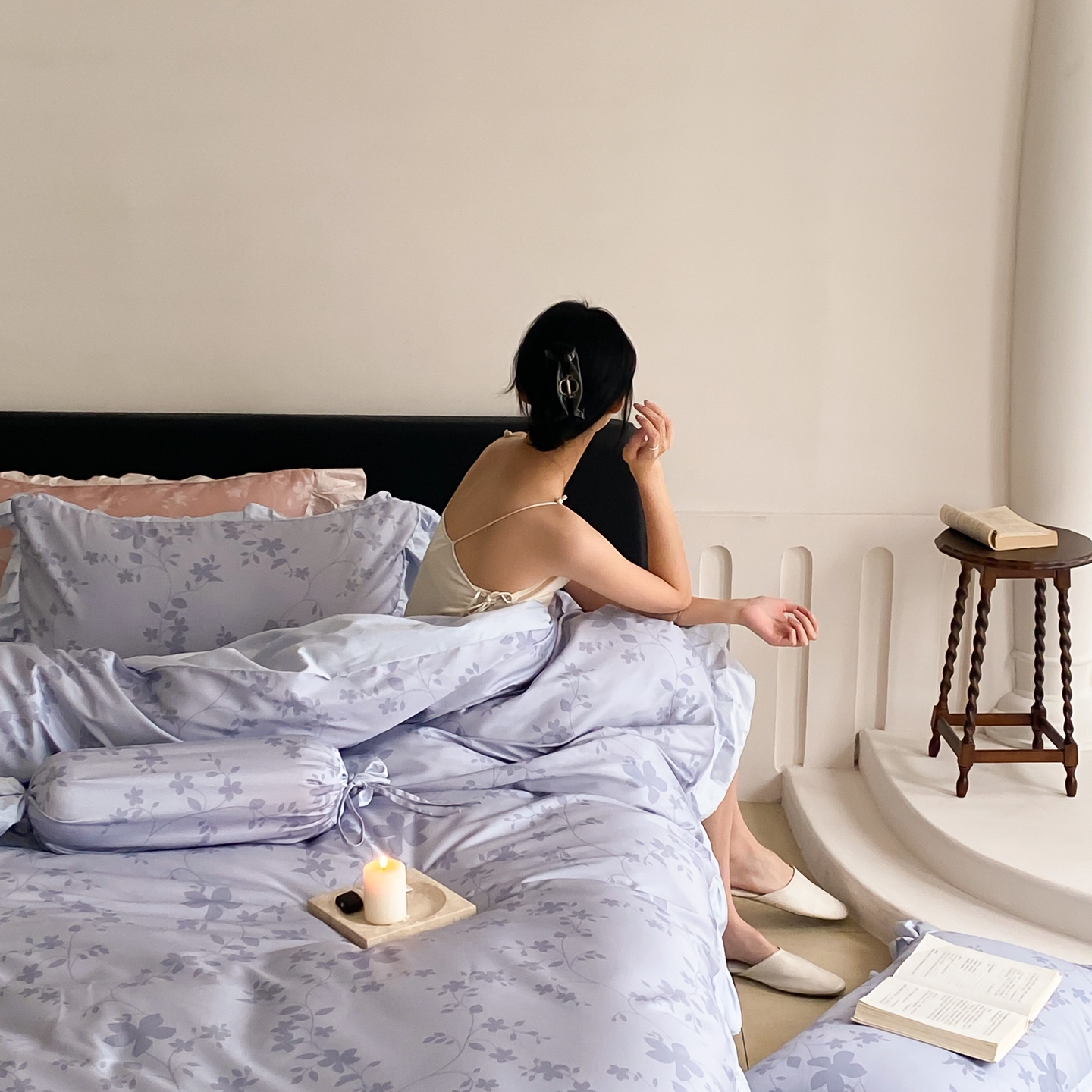 (总)若未家居2023新款轻奢意式50支全棉长绒棉四件套-水墨,贵族白,雾棕,烟蓝
