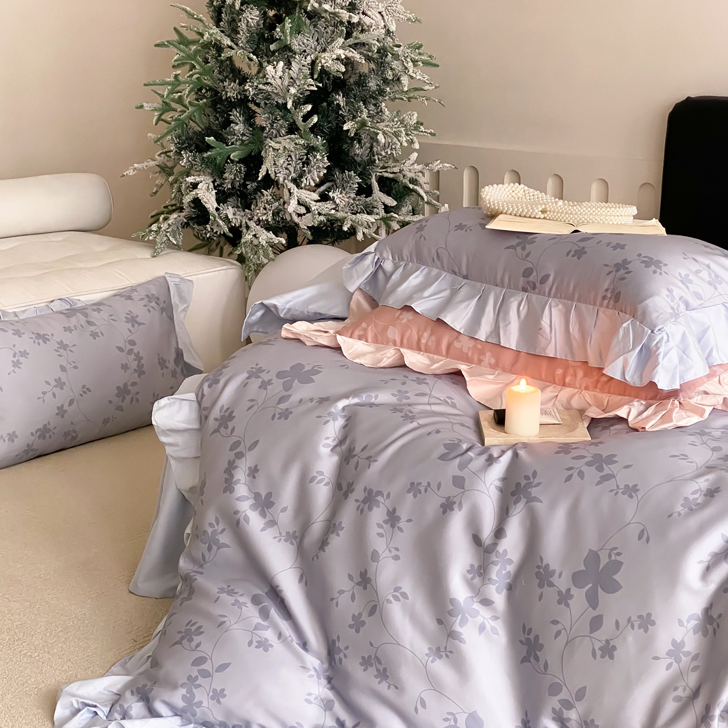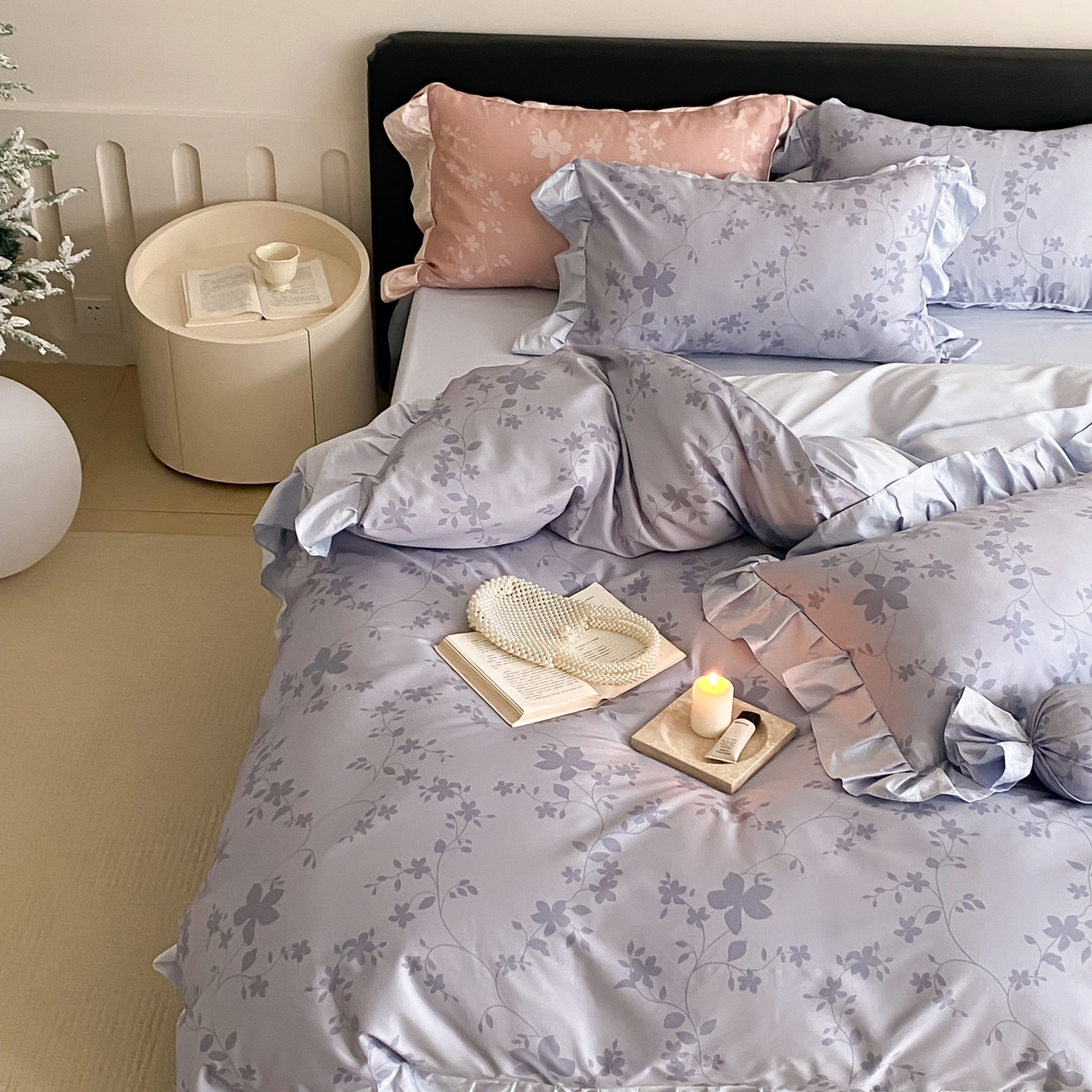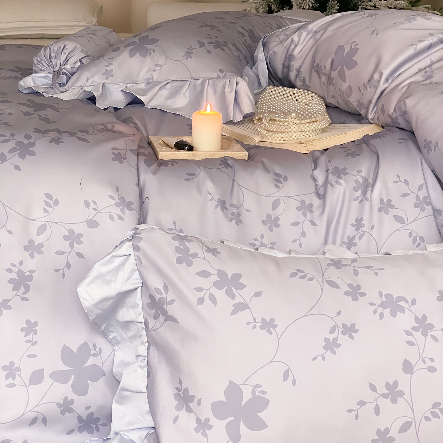 (总)若未家居 LOVEWE HOUSE 2026新款双拼角提花兰精天丝棉四件套-叶澜( 控价券后不低于398),叶澜-白,叶澜-粉,叶澜-西子兰,叶澜-紫