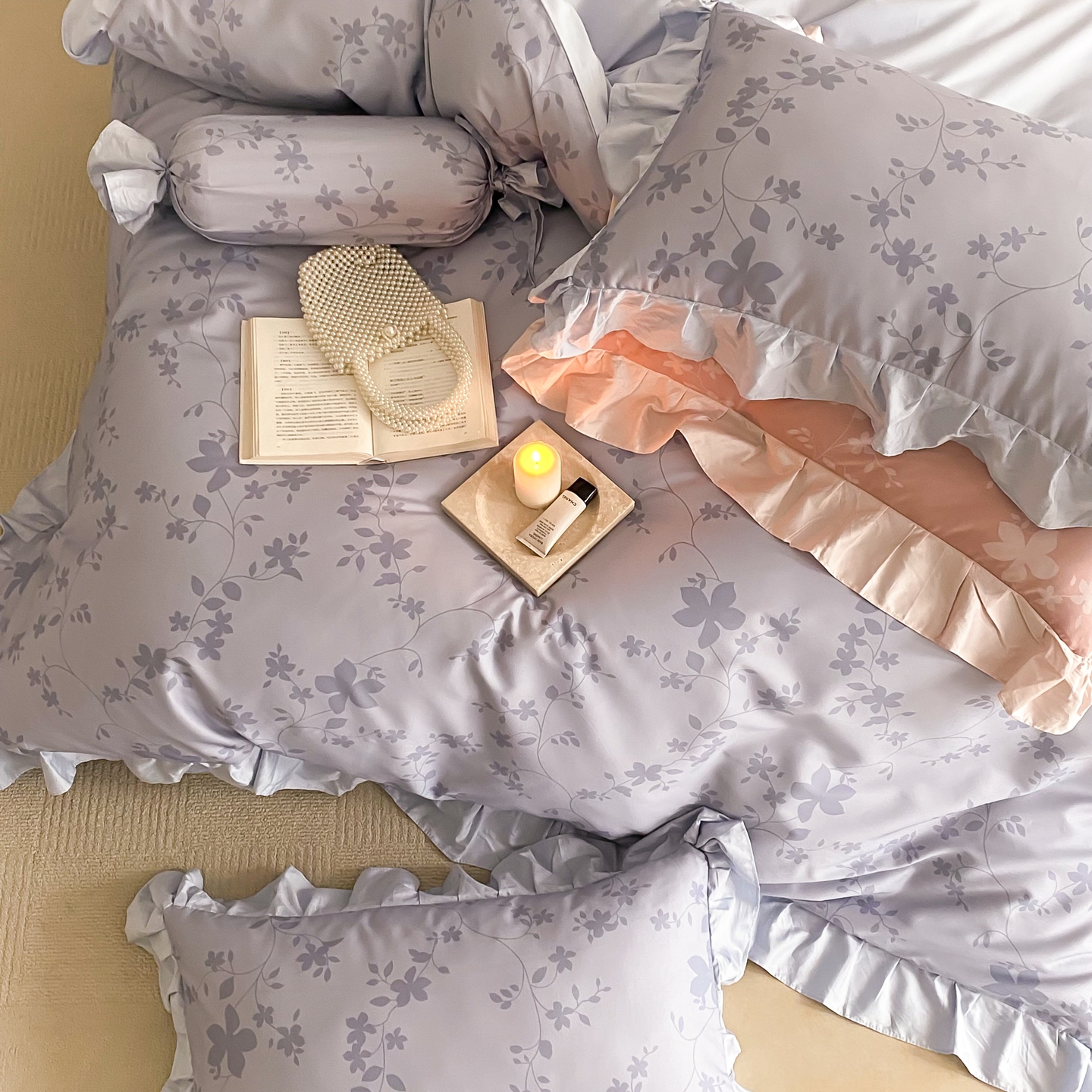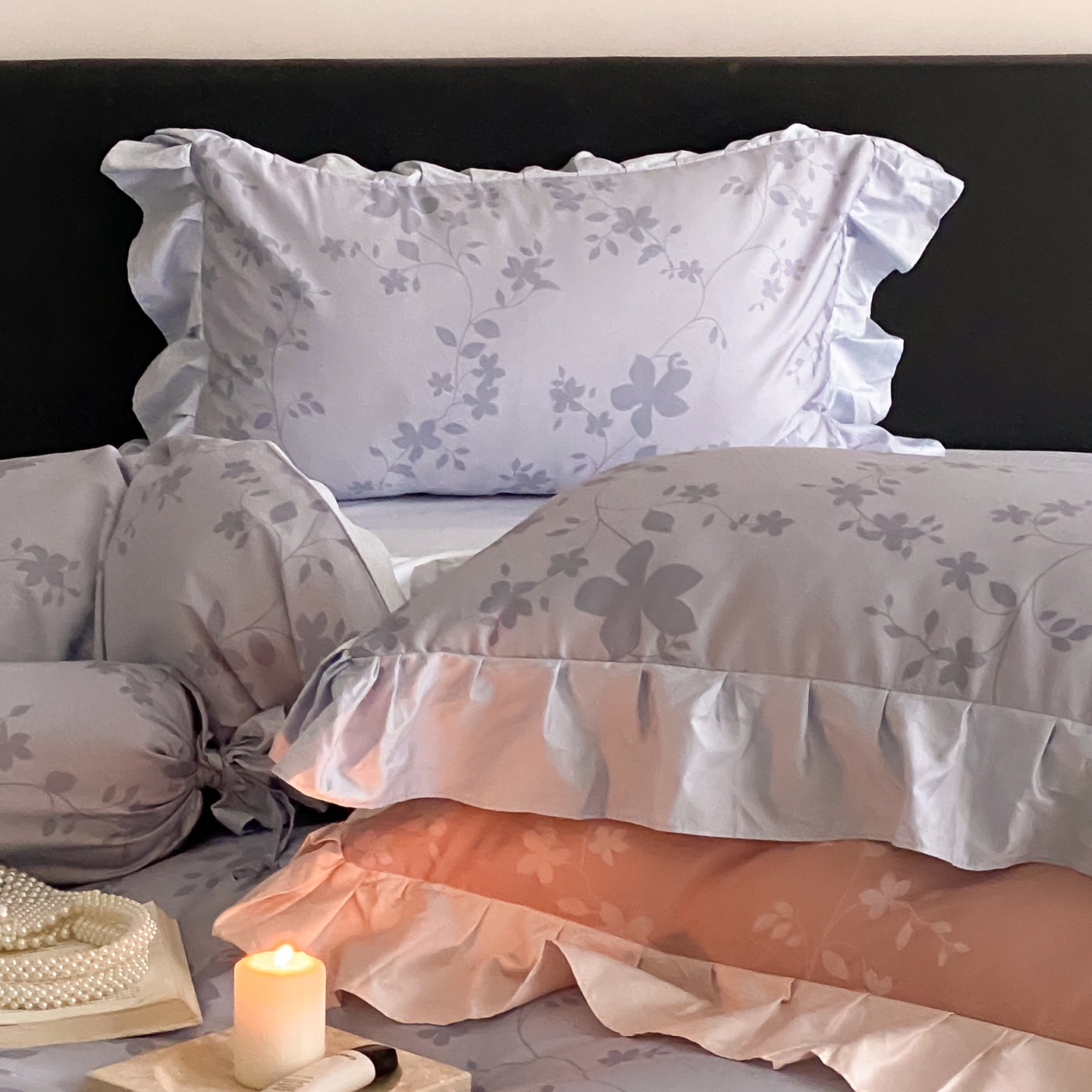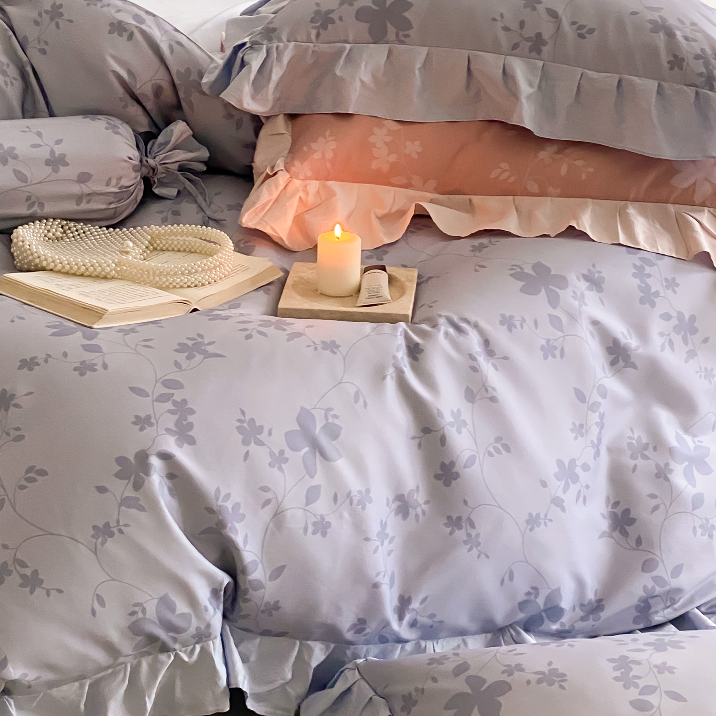 (总)若未家居 LOVEWE HOUSE 2026新款100S数码印花轻奢风四件套-波澜,波澜 爵士灰,波澜 公主粉,波澜 贝拉橘