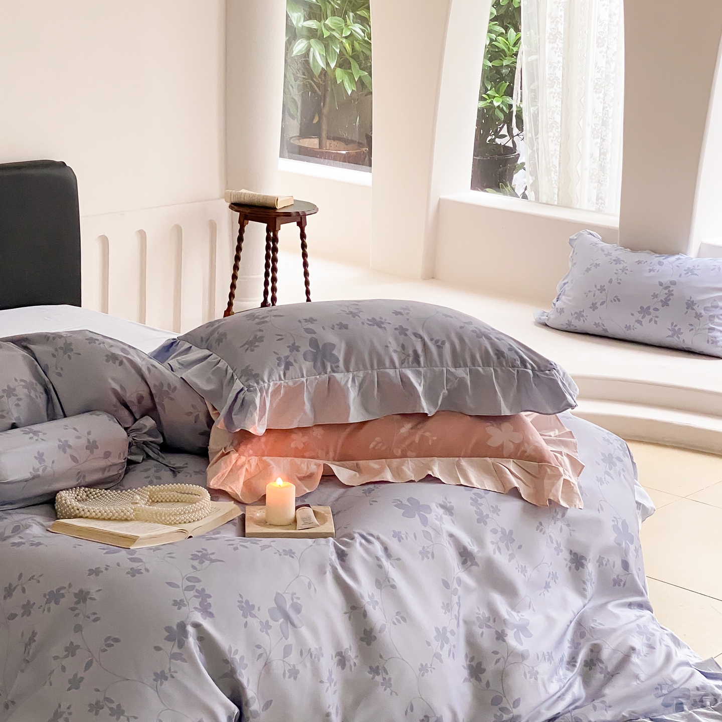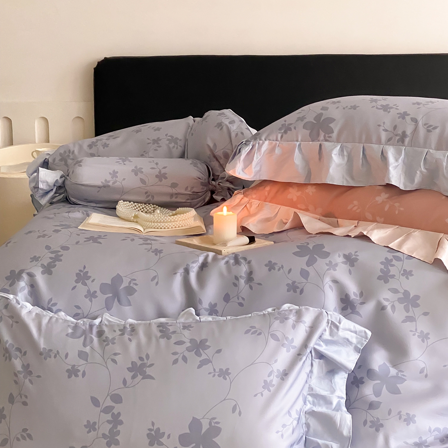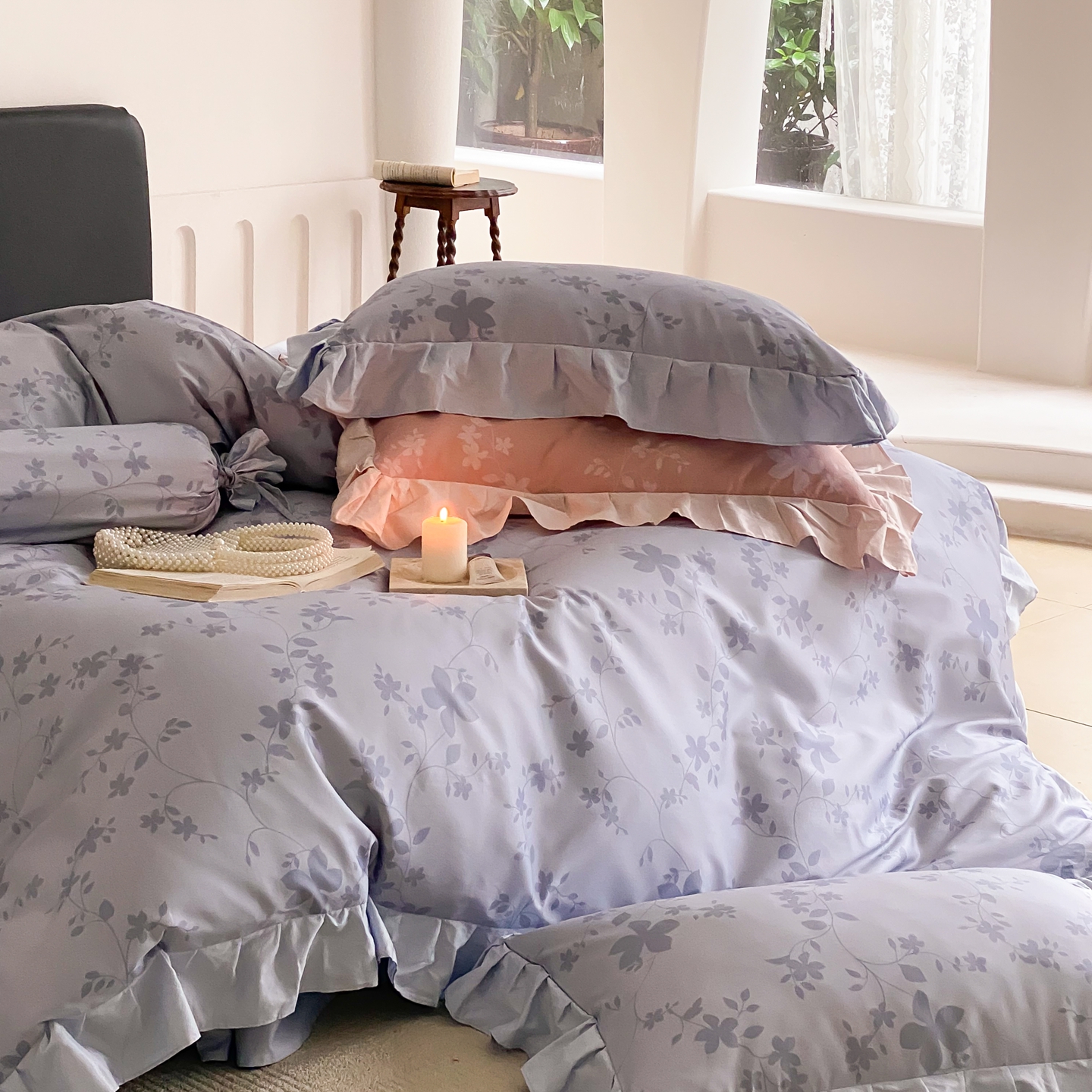 (总)若未家居 LOVEWE HOUSE 2026新款100S数码印花轻奢风四件套-波澜,波澜 爵士灰,波澜 公主粉,波澜 贝拉橘