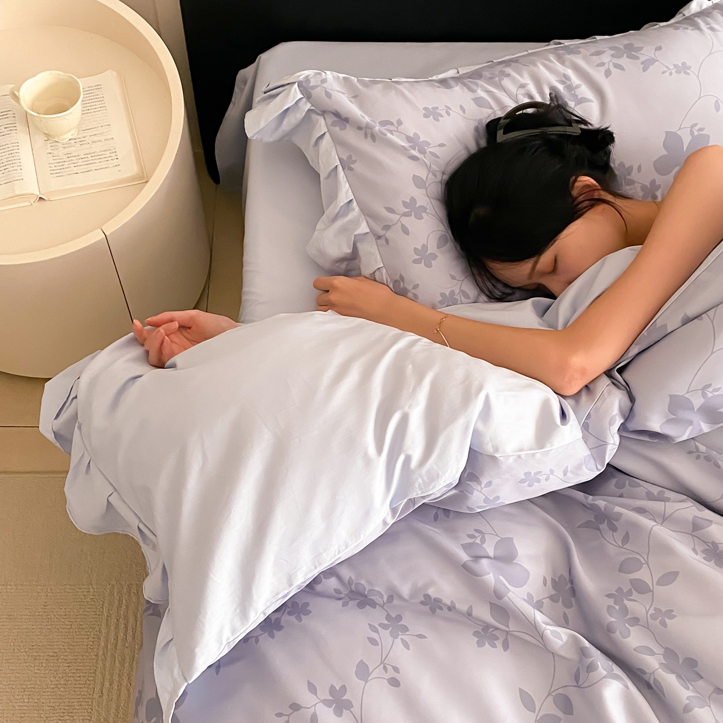 商品名称:若未家居 LOVEWE HOUSE 2026春夏新品AB版100支法式全棉数码印花四件套-弥の野(券后控价不低于398) 弥の野-蓝